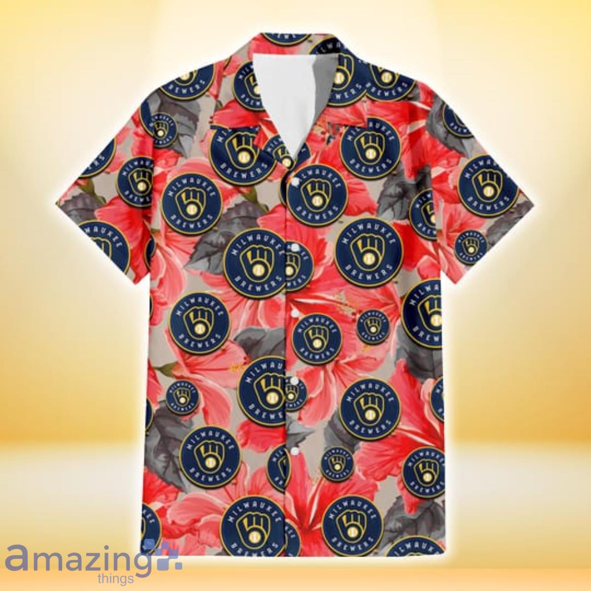 Some of the Milwaukee Brewers Red Hibiscus Gray Leaf Gainsboro Background 3D Hawaiian Shirt Gift For Fans photos