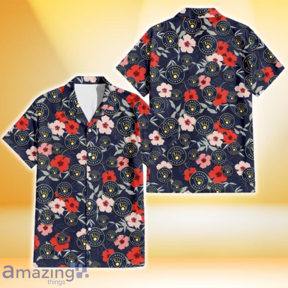 Some of the Milwaukee Brewers Red Pink White Hibiscus Black Background 3D Hawaiian Shirt Gift For Fans photos