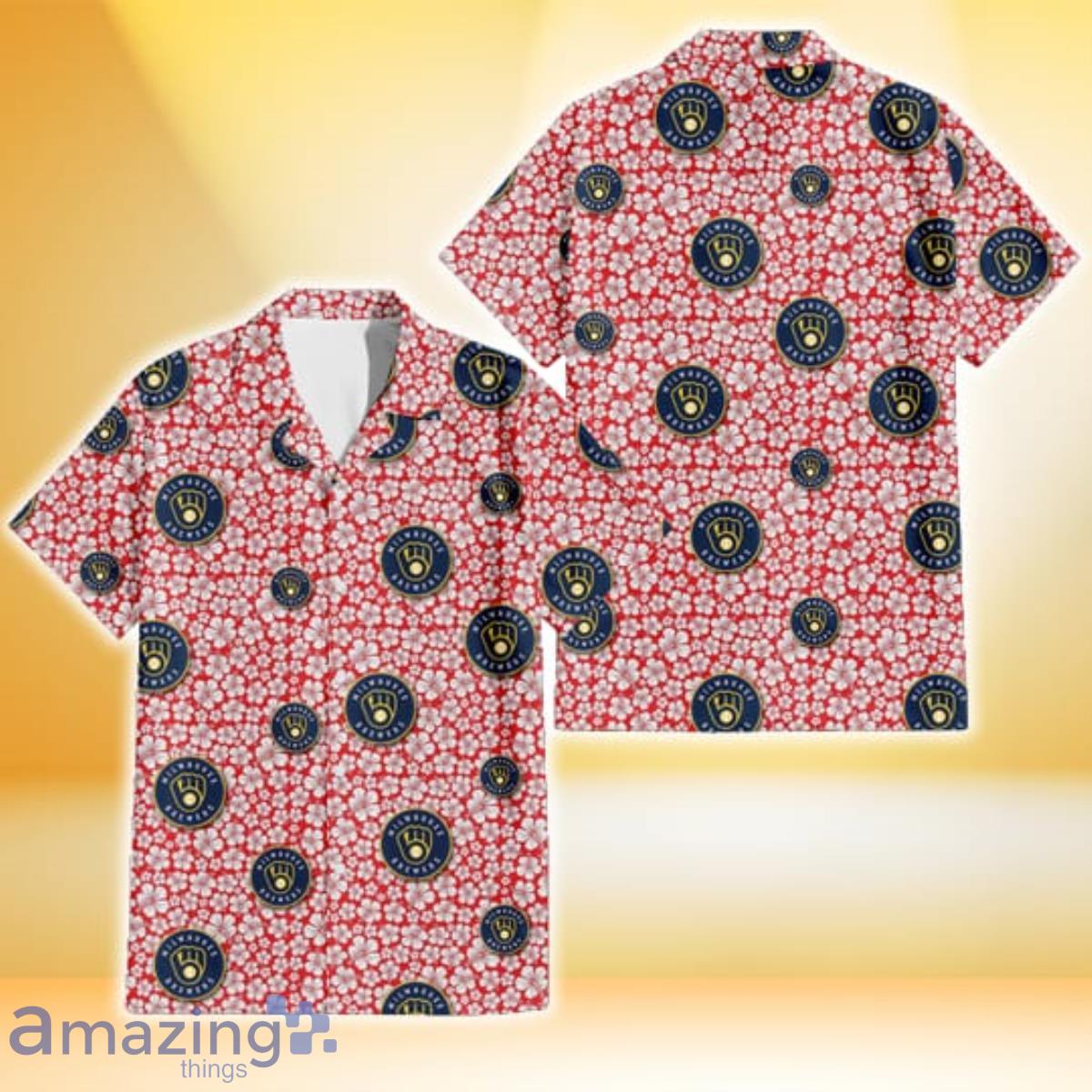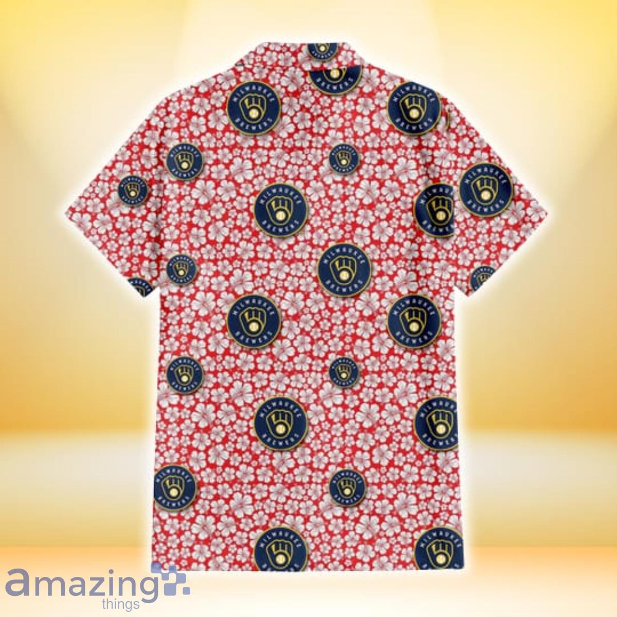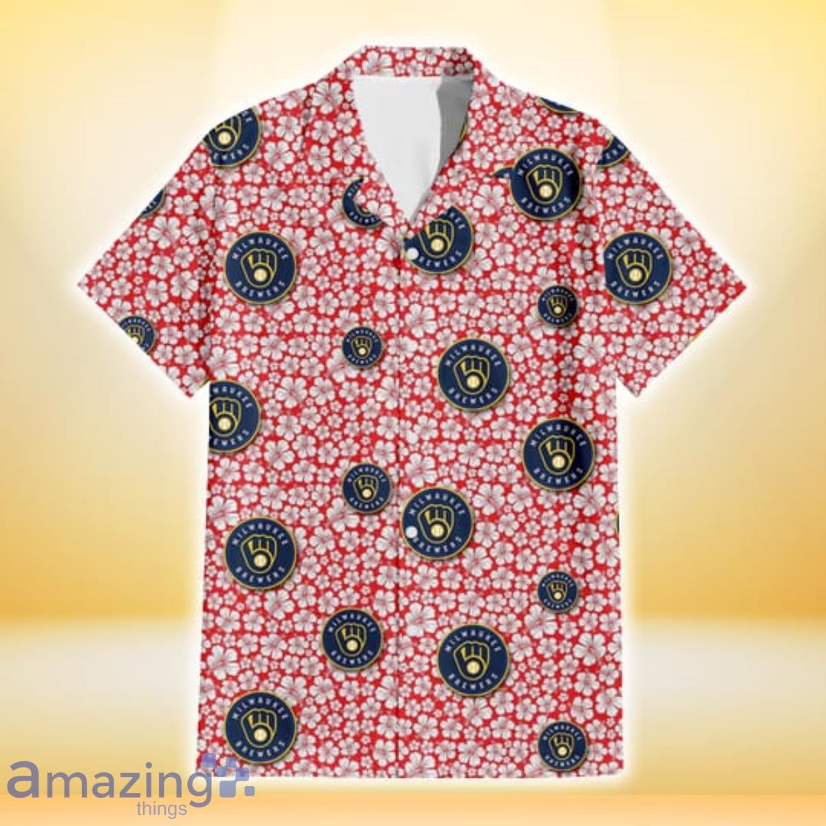 Some of the Milwaukee Brewers Tiny White Hibiscus Pattern Red Background 3D Hawaiian Shirt Gift For Fans photos