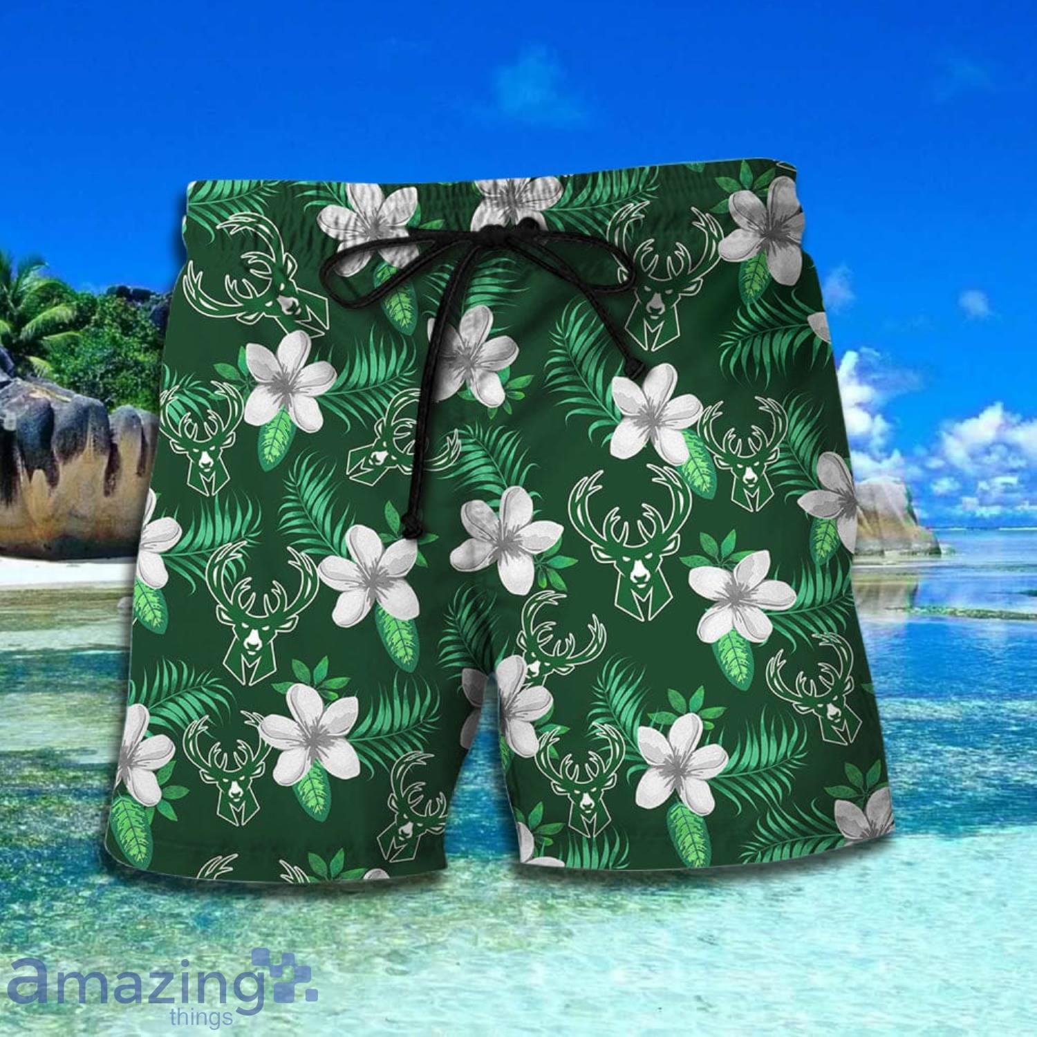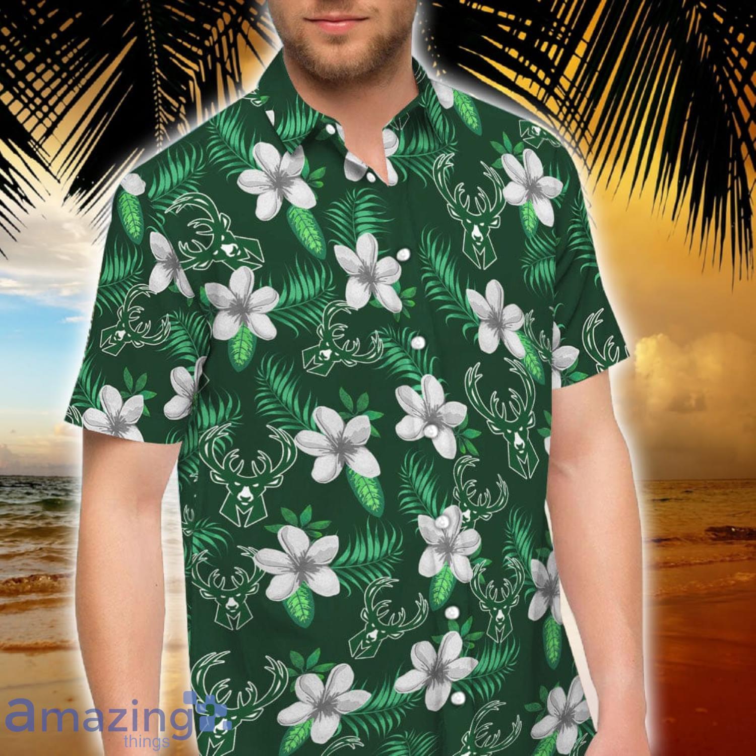 Milwaukee Bucks Green Tropical Pattern Short Sleeve Hawaiian Shirt And Short