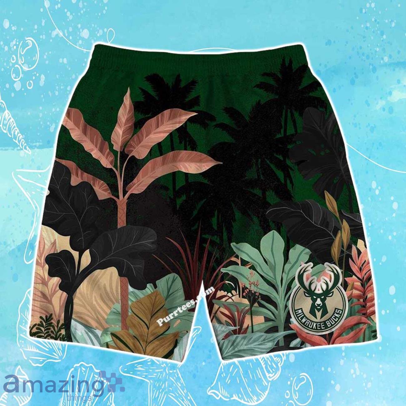 Milwaukee Bucks Team Logo Pattern Tropical Hawaiian Shirt & Short Details: