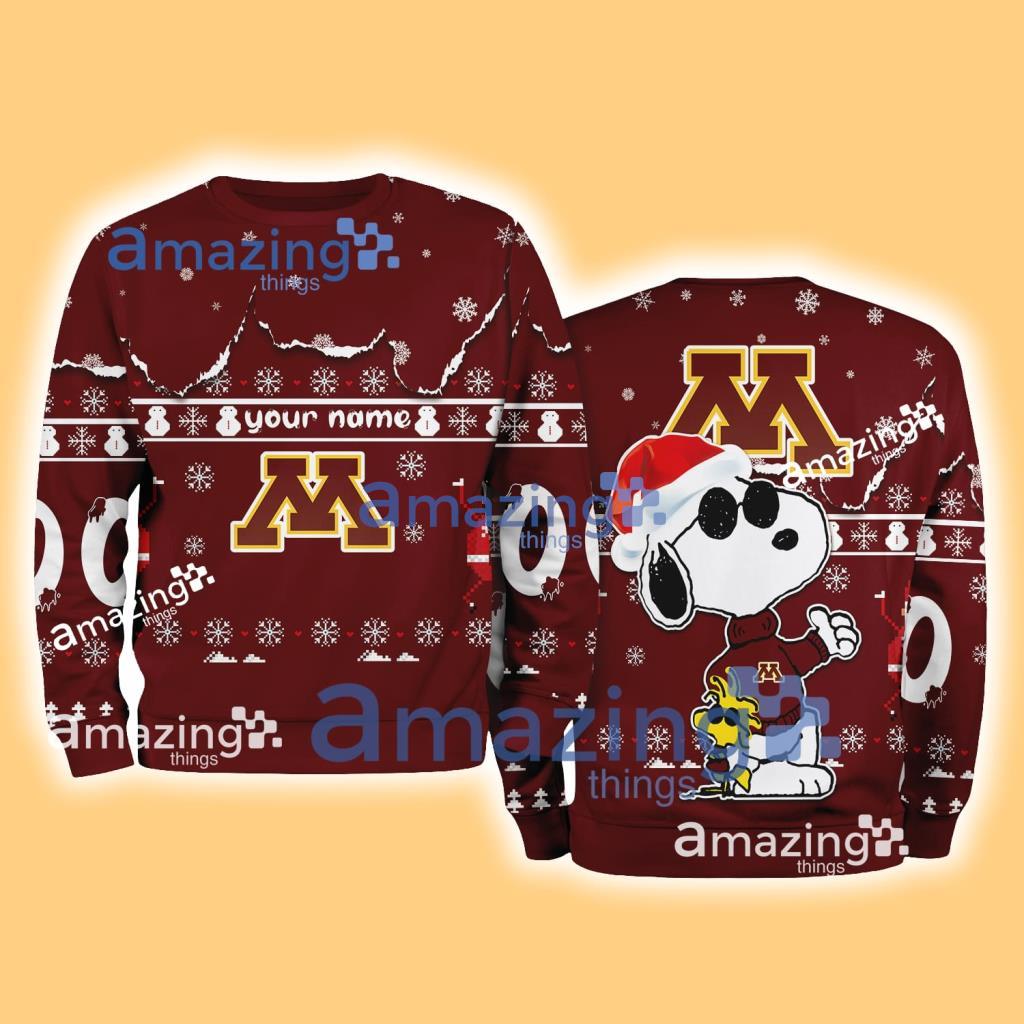 Minnesota Golden Gophers NCAA Snoopy and Woodstock Cute Personalized Number Christmas Ugly Sweater New Gift Limited Edition