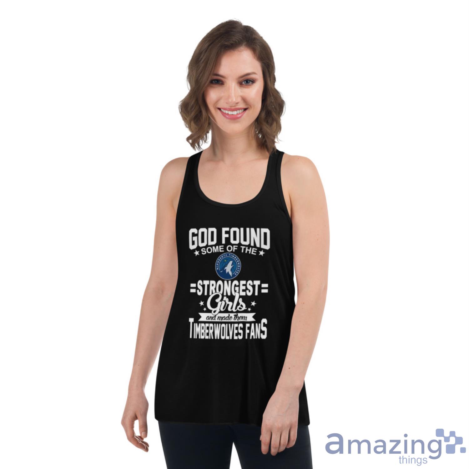 Featuring a bold and eye-catching design, this t-shirt is sure to turn heads wherever you go. The vibrant colors and detailed graphics showcase your love for the Minnesota Timberwolves and their amazing basketball team. And with the “God Found Some Of The Strongest Girls Adoring Fans” slogan on the front, you can proudly show off your support for the team and fellow female fans.