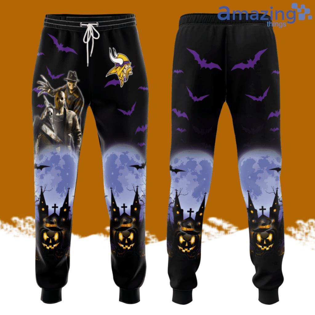Some of the Minnesota Vikings Football Team, Freddy Krueger, Michael Myers, Jason Voorhees Halloween All Over Print 3D Long Pants Black photos