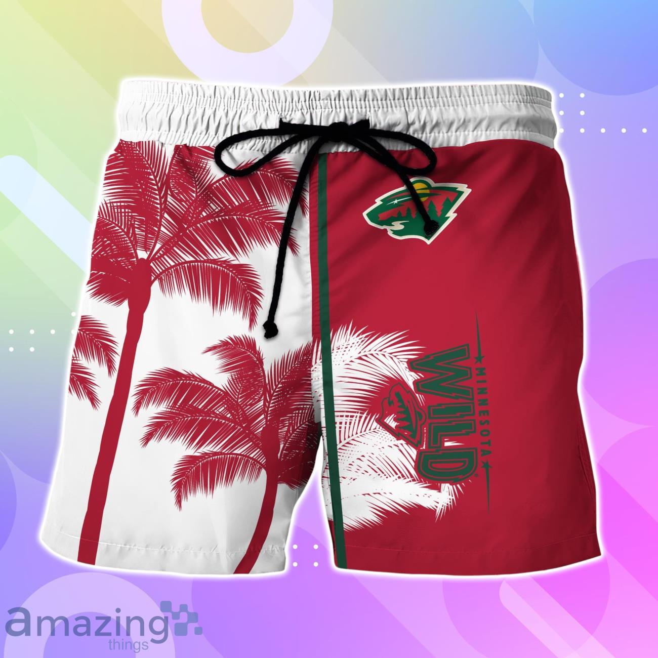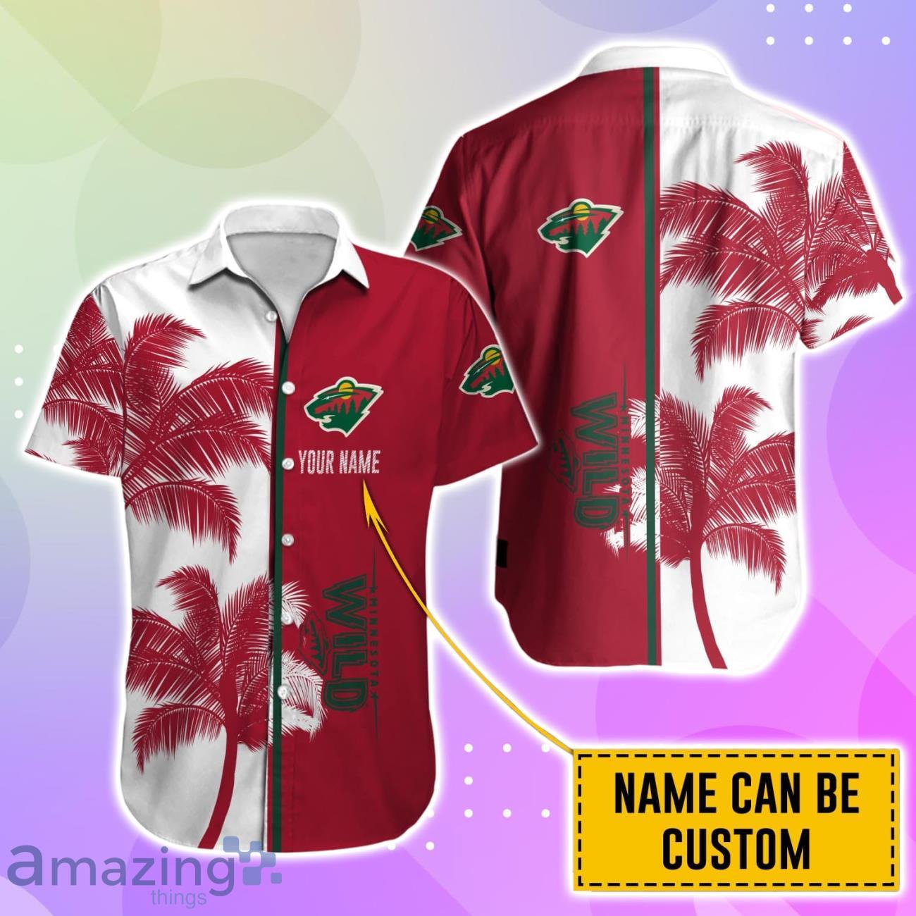 Show off your love for the Minnesota Wild in style with this Hawaiian shirt and short set featuring a fun palm tree design! Personalize it with your name for a customized touch. Perfect for game days, vacations, or just adding a tropical twist to your wardrobe. Get ready to turn heads and stand out from the crowd with this unique and eye-catching ensemble. Order yours today and bring a little piece of paradise to your everyday look!