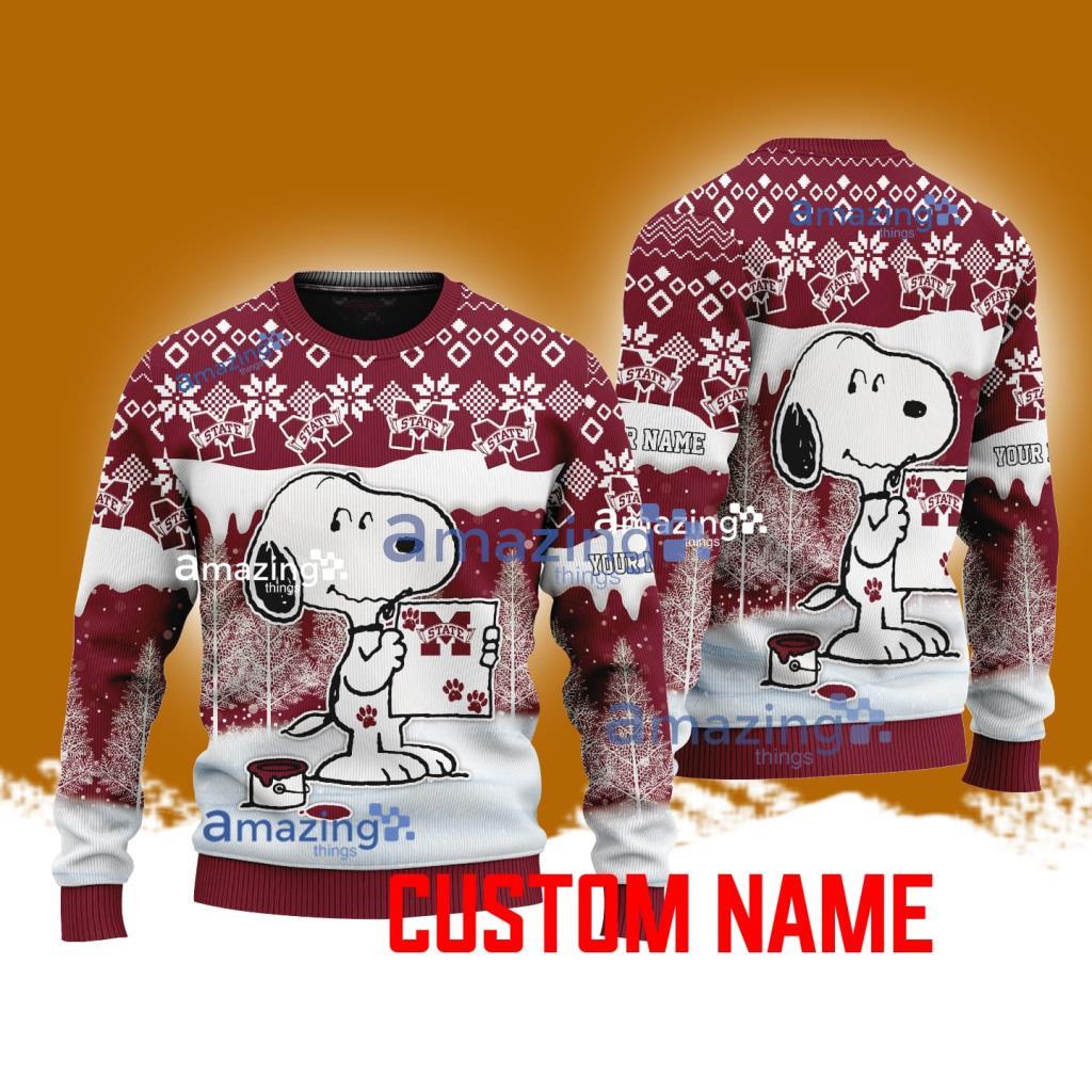Mississippi State Bulldogs NCAA Snoopy Cute Christmas Ugly Sweater 3D Gift For Fans Custom Name