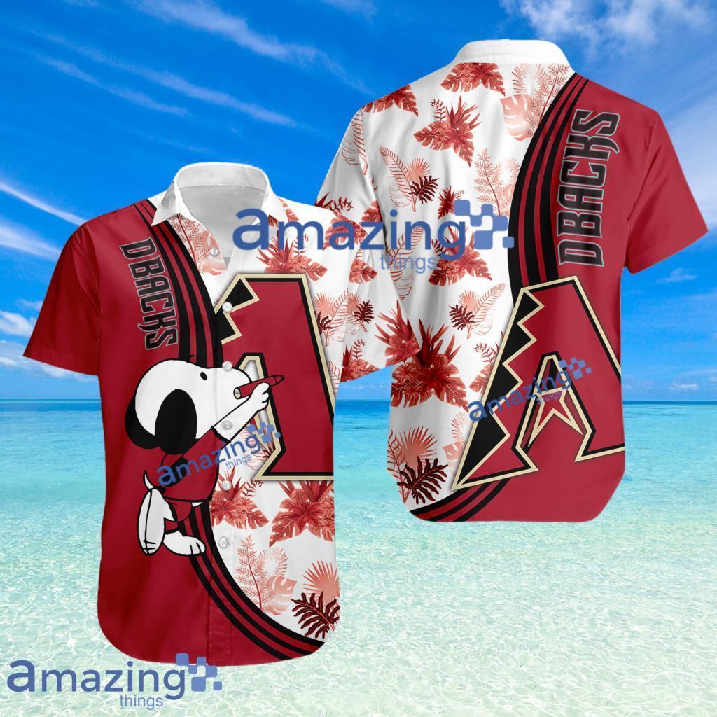 Mlb Logo Snoopy Pattern Tropical Button Down Hawaiian Shirt