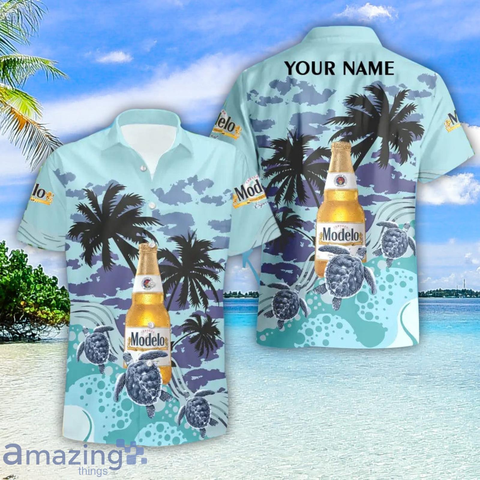 Modelo Beer Turtles Palm Tree Hawaiian Shirt And Shorts Custom Name Special Summer Gift Details: