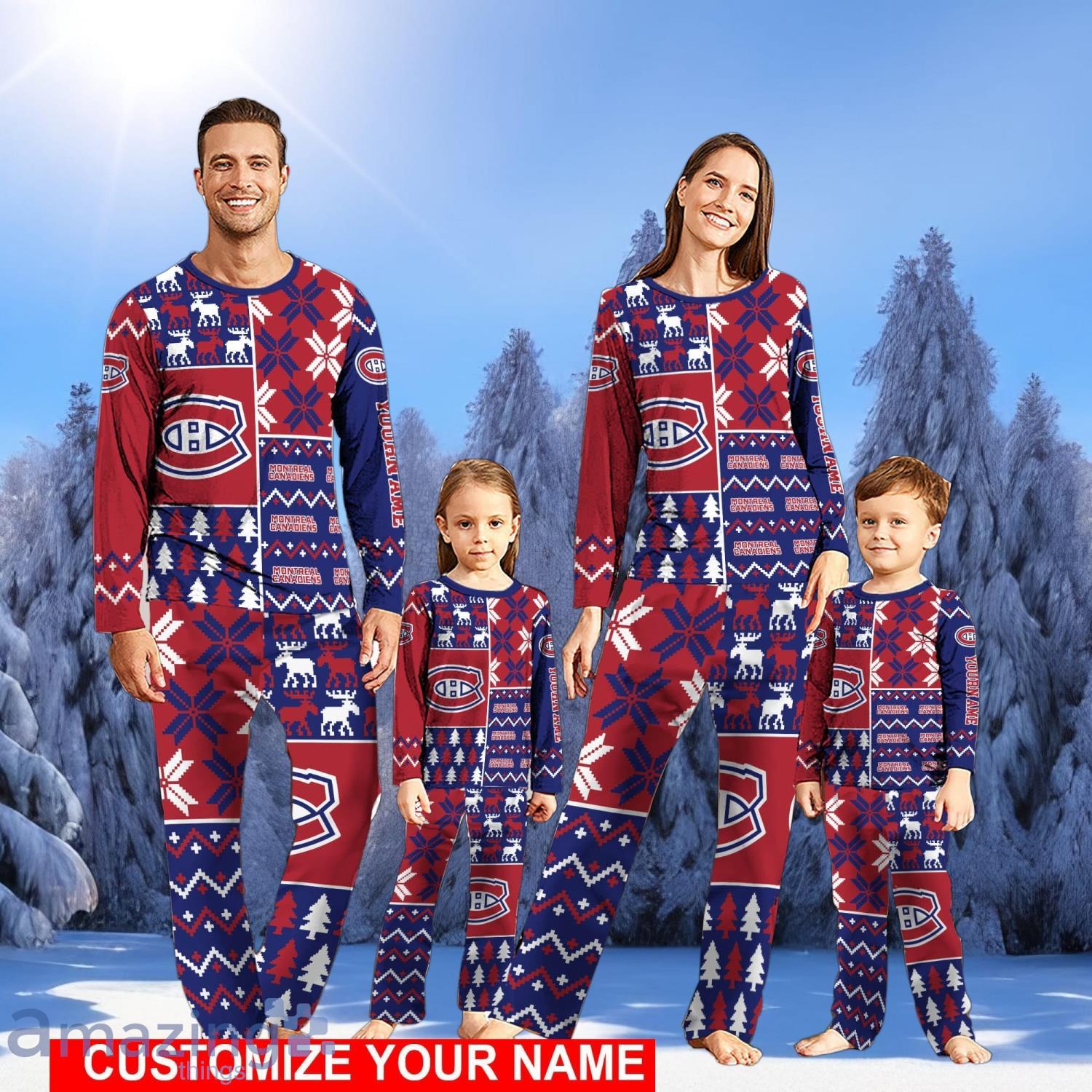 Some of the Montreal Canadiens Pajamas Set Christmas snowflake pattern Pajamas Christmas Gift For Family Custom Name photos