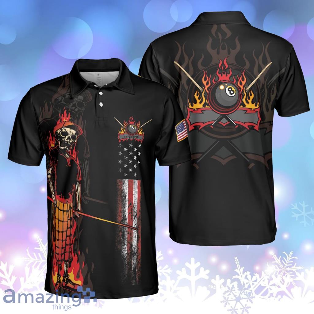 Mr Bones 8 Ball American Flag Billiards Cool Skeleton Billiards Personalized Polo Shirt Product Photo 1