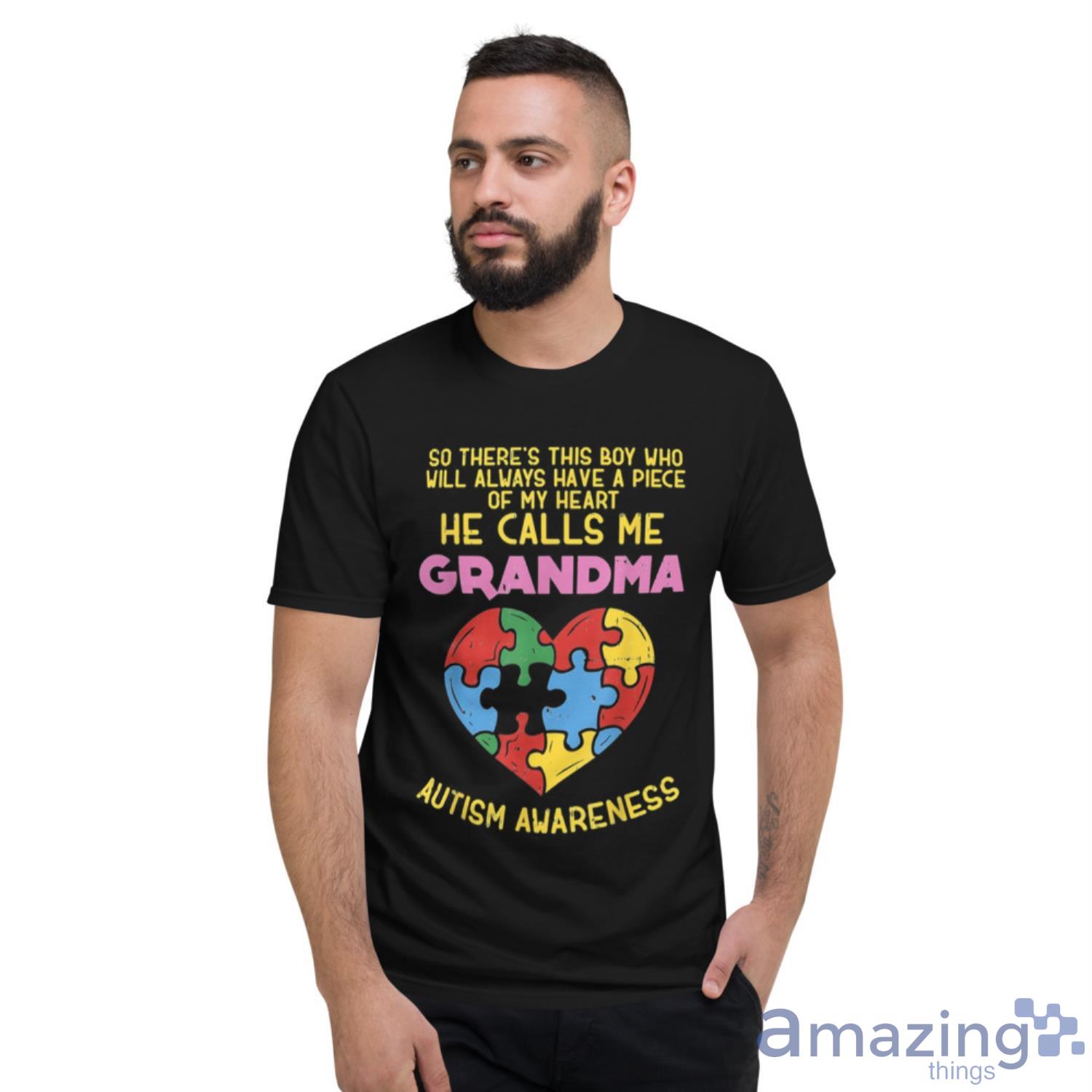 Are you looking for a way to show your support for autism awareness? Look no further than the My Heart He Calls Me Grandma Autism Awareness T Shirt!