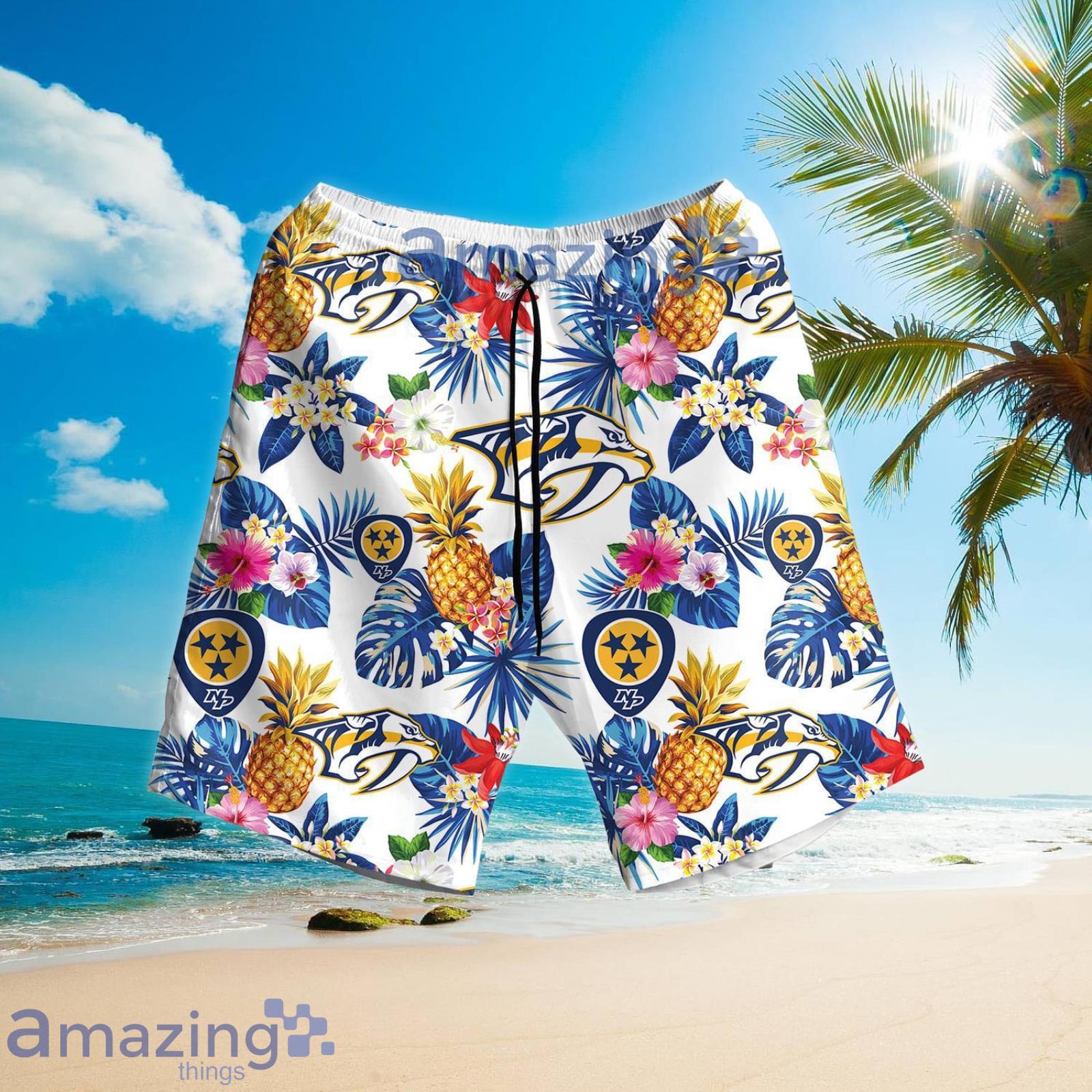 Some of the Nashville Predators Pineapple Tropical Flower Summer Set Hawaiian Shirt And Shorts photos