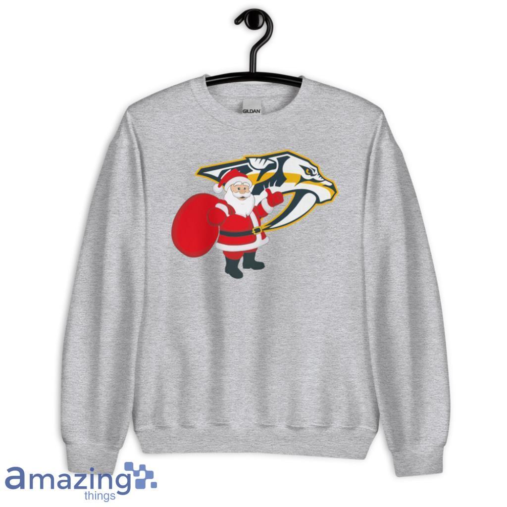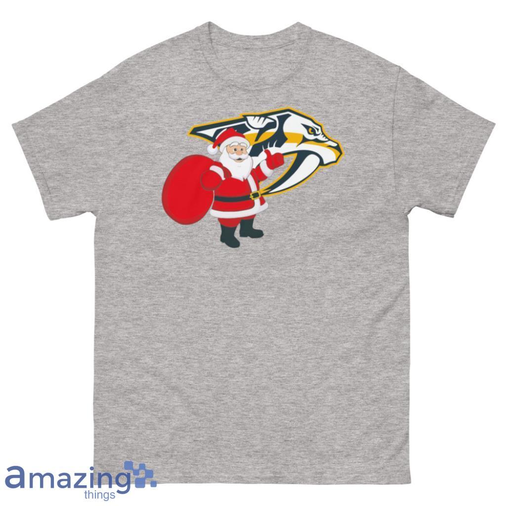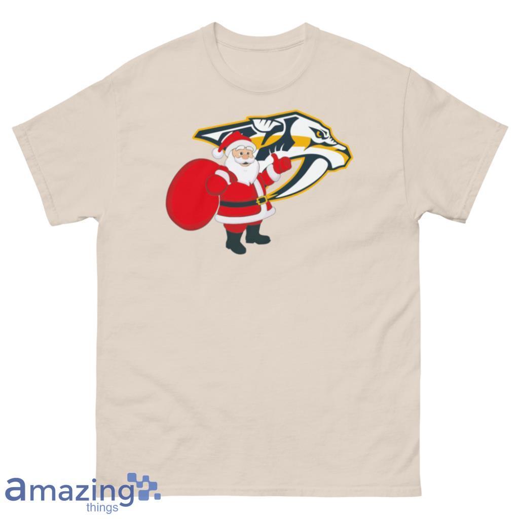 Don’t miss out on the opportunity to combine your love for the Nashville Predators with the joy of the holiday season. Order your Nashville Predators Santa Claus Logo Christmas T Shirt today and get ready to spread some festive team spirit!