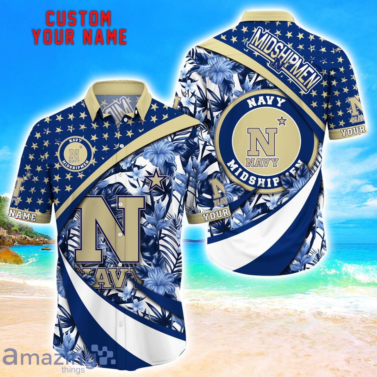 Get ready to show off your Navy Midshipmen pride in style with our Custom Name Floral Hawaiian Shirt! This vibrant and eye-catching summer beach shirt is perfect for fans looking to stand out at any game day or beach outing. Made with premium materials and featuring a unique floral design, this shirt can be personalized with your name for that extra special touch. Don’t miss out on the opportunity to rock this must-have shirt and support your favorite team in a fashionable way. Order yours today and be the envy of all Navy Midshipmen fans!
