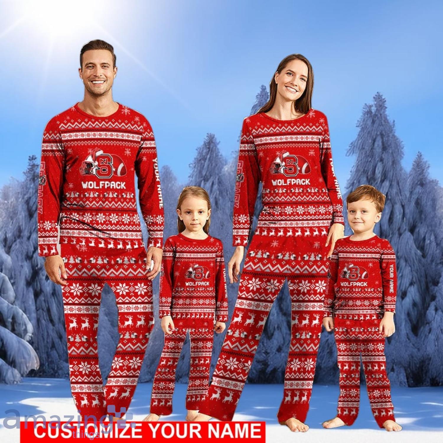 NC State Wolfpack Team Pajamas Set Christmas Gift For Football Fan Family Holiday Gift Personalized Name Information