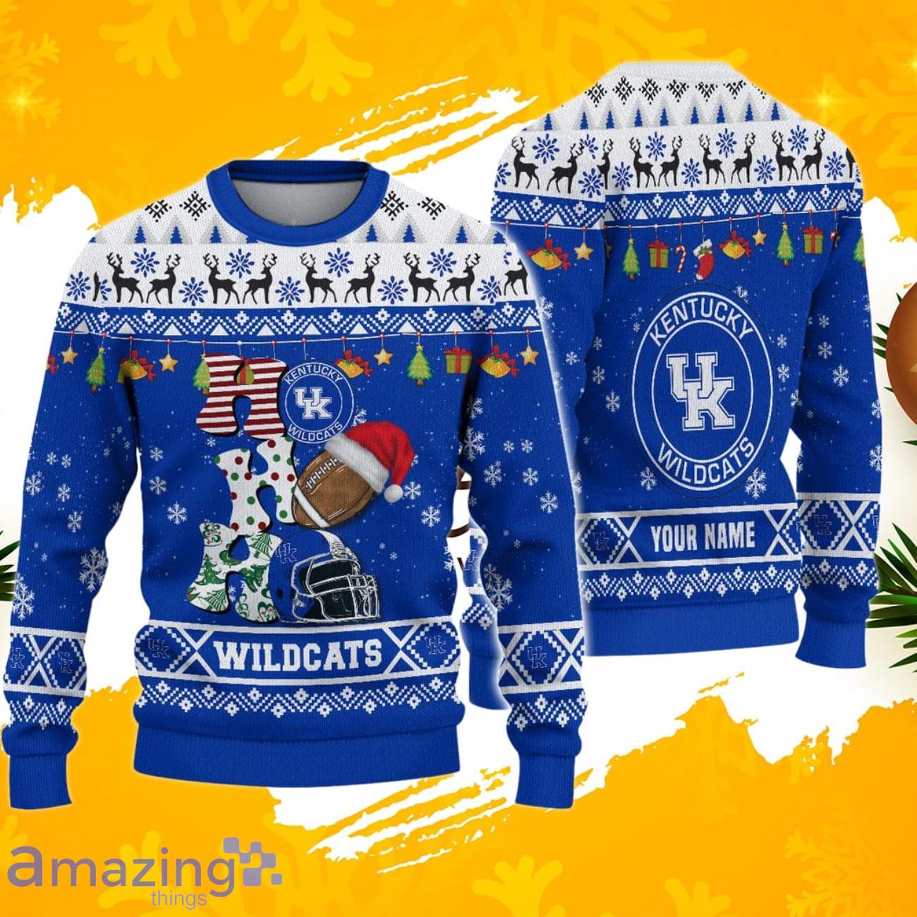 NCAA Kentucky Wildcats HO HO HO Ugly Christmas Sweater Custom Name
