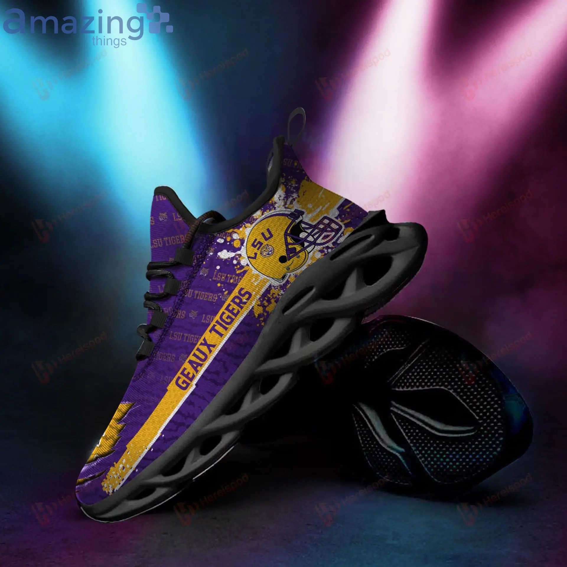 Introducing the Max Soul Shoes! These shoes are perfect for any fan of the NCAA LSU Tigers. They come in a purple color with a custom LSU Tigers logo on the side. They are made out of high-quality materials and are designed to provide comfort and support while you’re cheering on your team. Whether you’re at a game or just watching on TV, these shoes will make you look and feel your best. So order your Max Soul Shoes today and get ready to cheer on the LSU Tigers!