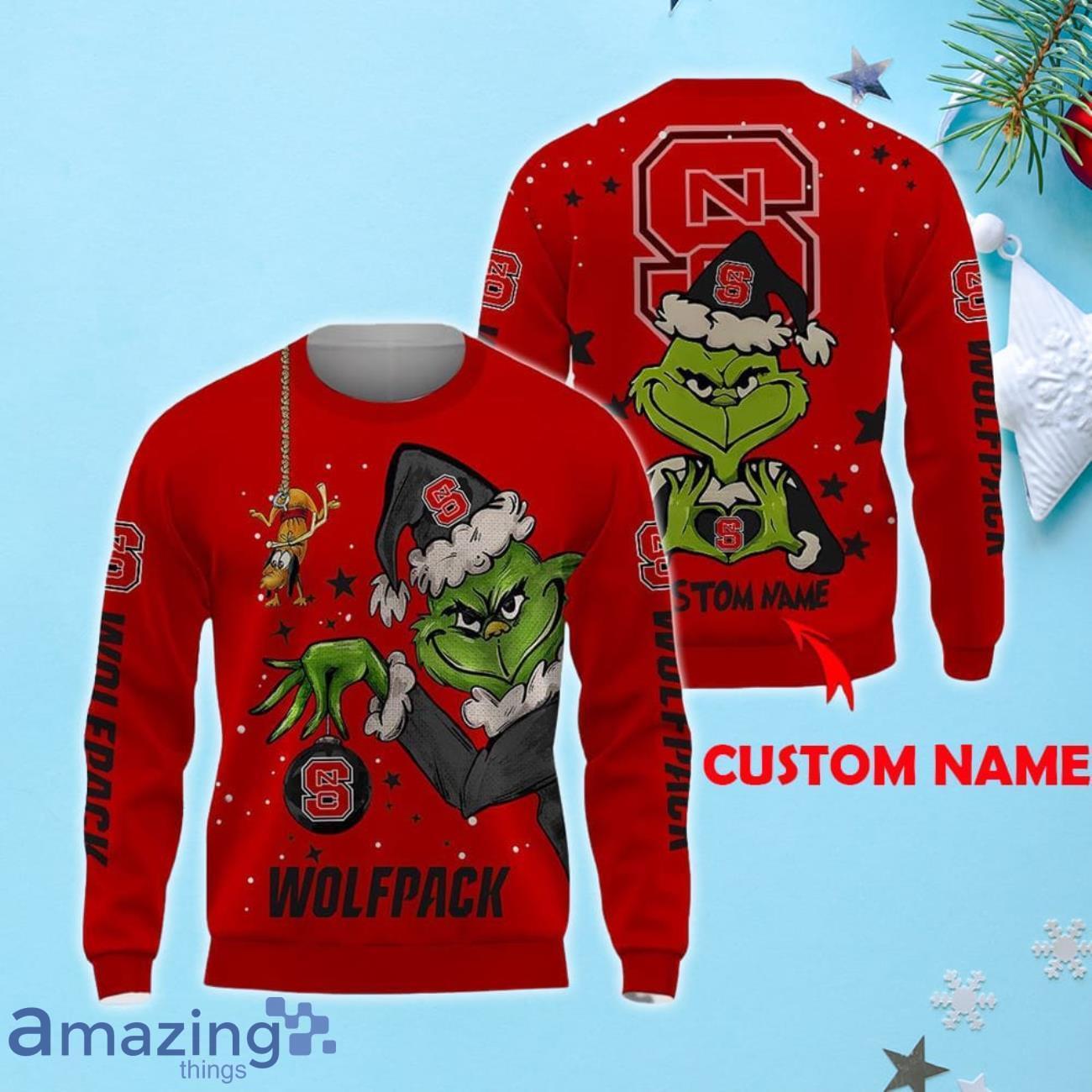 NCAA NC State Wolfpack Grinch Ugly Christmas Sweater Custom Name Xmas Gift Informations: