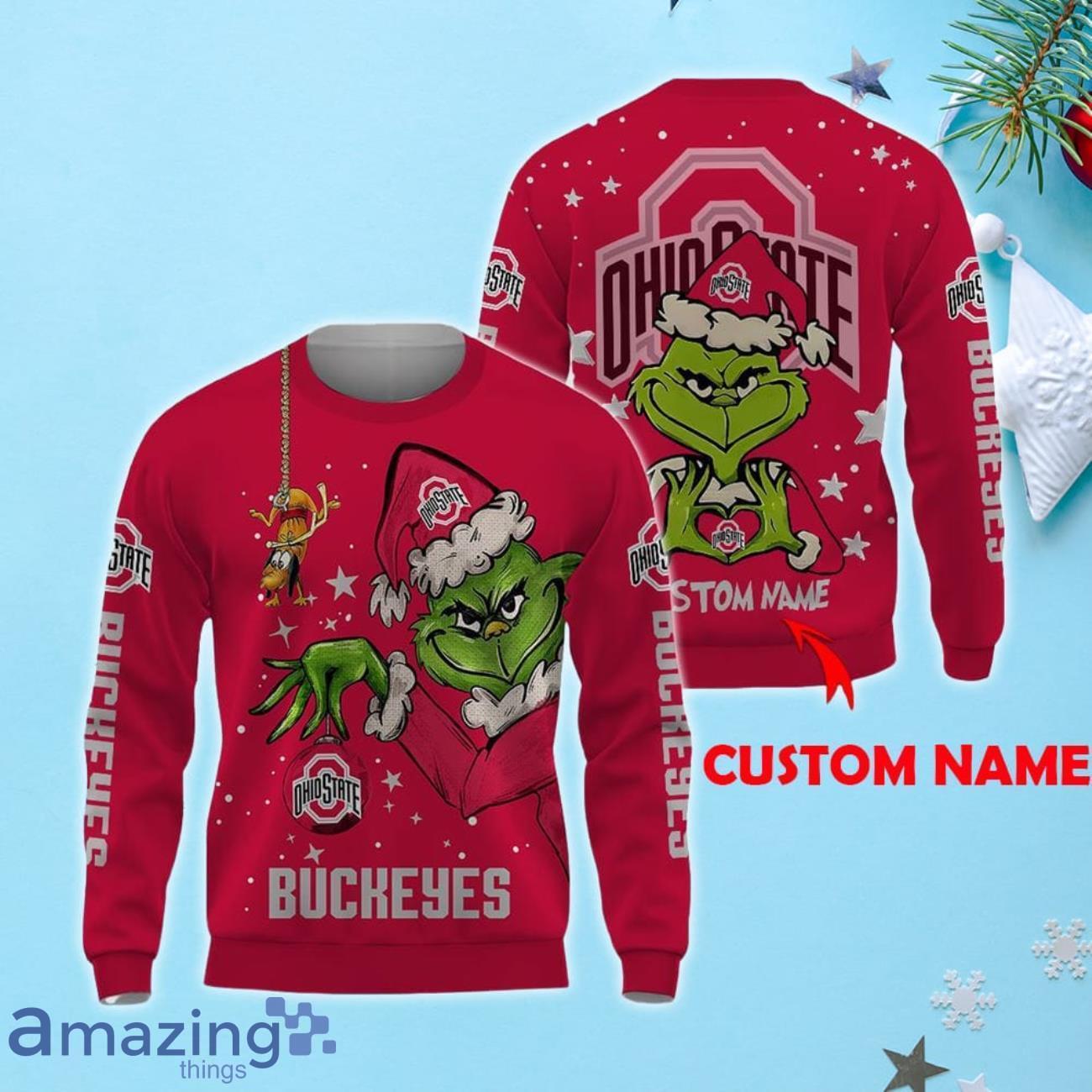 NCAA Ohio State Buckeyes Grinch Ugly Christmas Sweater Custom Name Xmas Gift