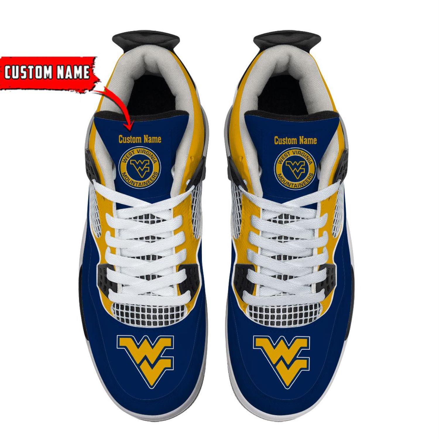 NCAA Personalized Name West Virginia Mountaineers Personalized Air Jordan 4 Shoes Trending Men Women Sneakers Sport Fans Gift Big Fans Information
