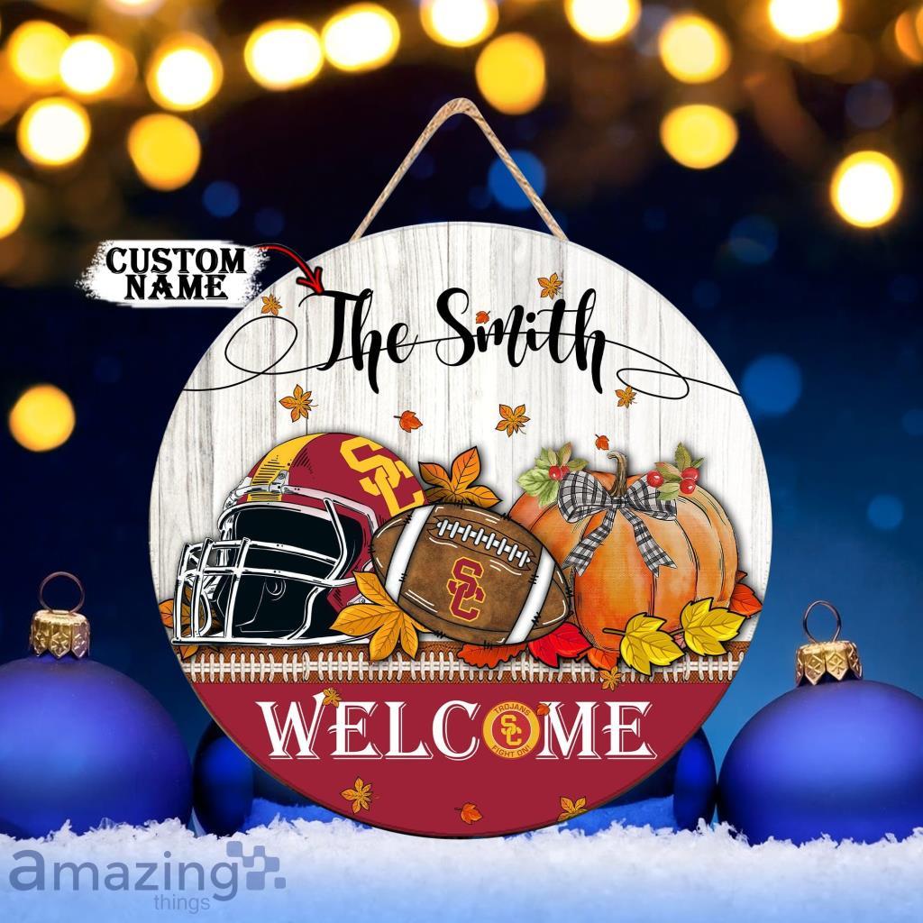 NCAA USC Trojans Personalized Family Name Round Wood Sign Thanksgiving Ornament Product Detail