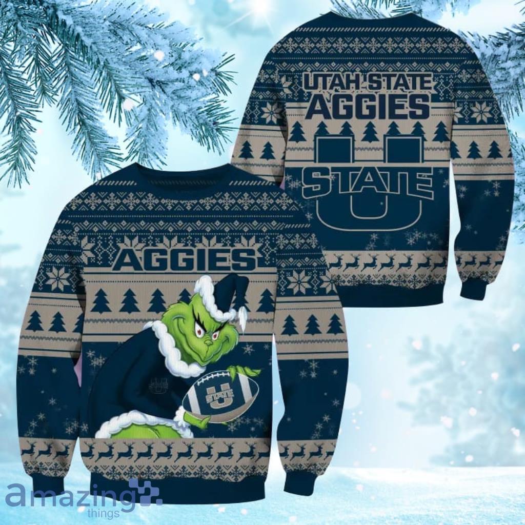 NCAA Utah State Aggies Grinch Personalized Christmas Ugly Sweater 3D Gift For Big Fans Informations: