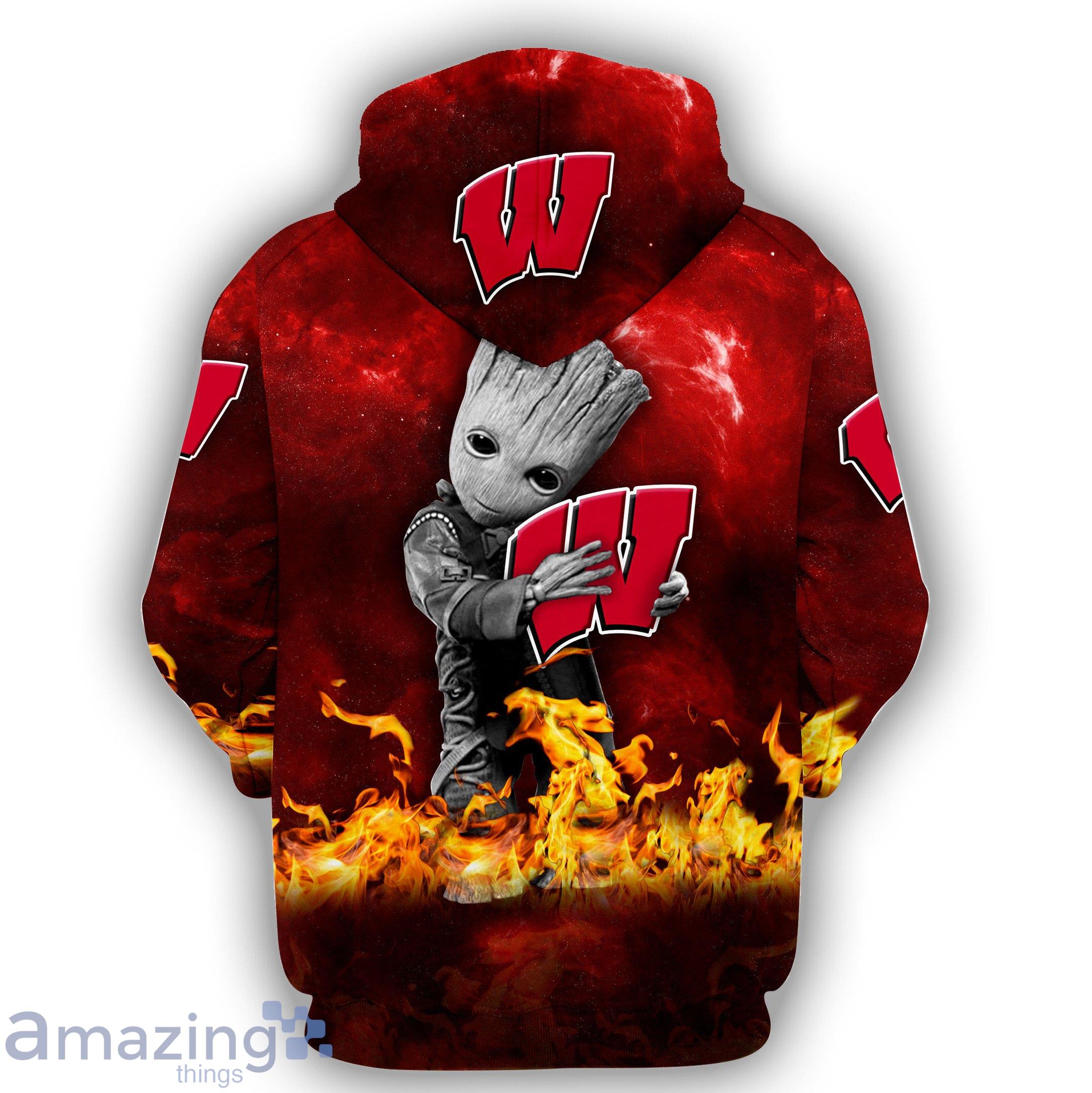 Some of the NCAA Wisconsin Badgers It’s Im My DNA Groot Fire 3D Hoodie photos