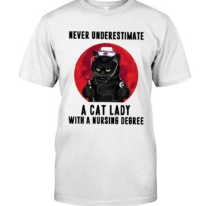 Celebrate the incredible women who juggle the demanding world of nursing with the heartwarming companionship of cats. The “Never Underestimate A Cat Lady With A Nursing Degree Black Cat Shirt” is a tribute to their strength, care, and unique spirit.