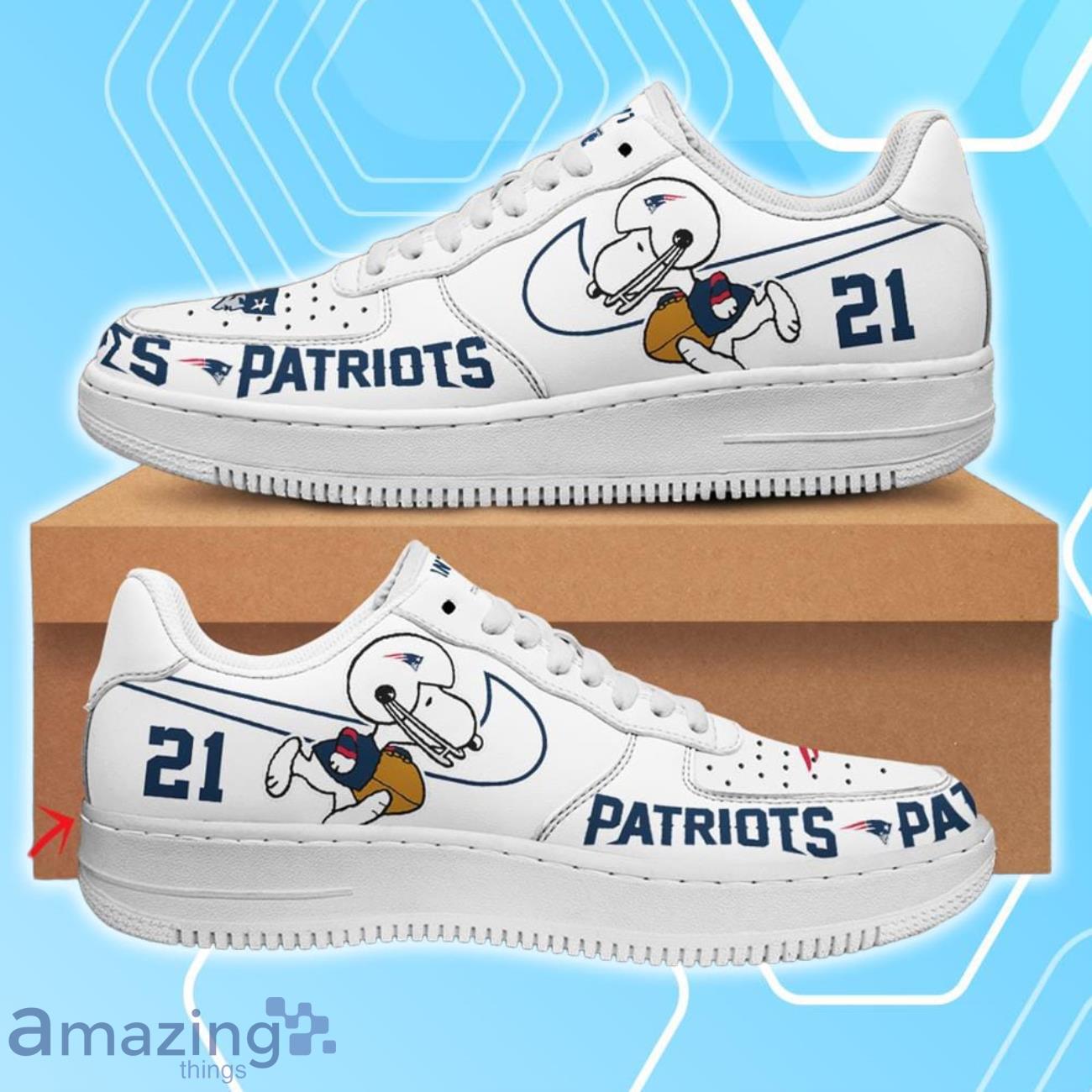The New England Patriots Air Force Shoes Snoopy Custom Number & Name are the ultimate must-haves for any die-hard Patriots fan. Crafted with meticulous attention to detail, these shoes showcase your unwavering loyalty to your favorite team while adding a touch of individuality with a custom number and name.