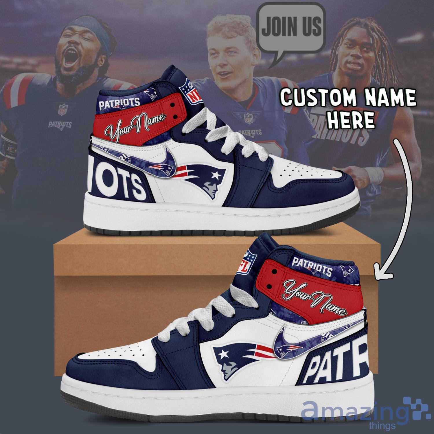 Crafted with meticulous attention to detail, these custom name shoes are a must-have for any true Patriots supporter. Now you can display your favorite player’s name or your own on these iconic Air Jordans, making them truly one-of-a-kind.