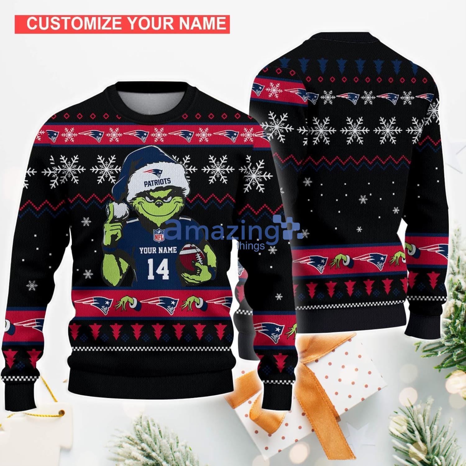 Get into the holiday spirit with our New England Patriots Team Logo Ugly Christmas Sweater! This custom sweater features your name and favorite player’s number, making it a must-have for any Patriots fan. Stand out at your next holiday party or game day gathering with this festive and cozy sweater. Show off your team pride in style with our officially licensed New England Patriots Ugly Christmas Sweater!