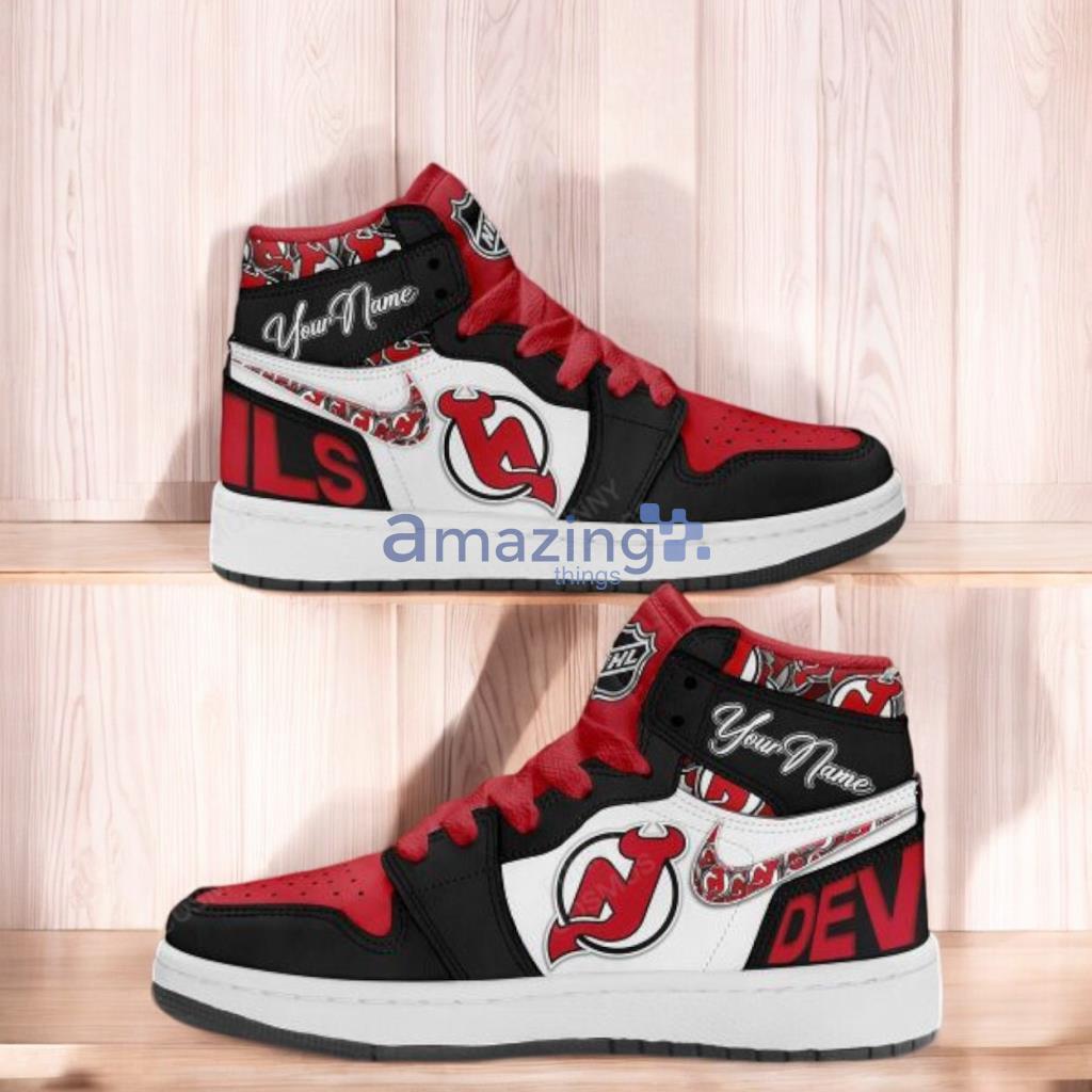 Some of the New Jersey Devils NHL Personalized Air Jordan 1 Shoes For Fans photos