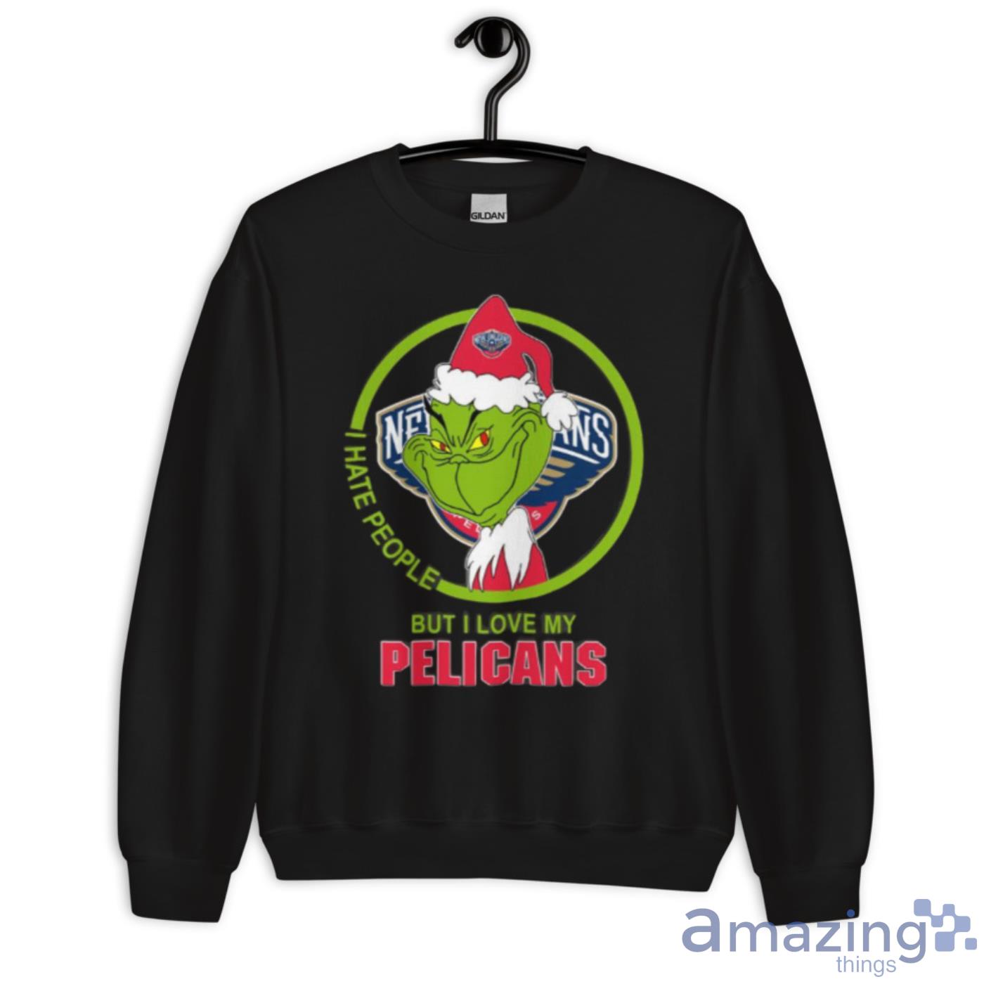 New Orleans Pelicans NBA Christmas Grinch I Hate People But I Love My Favorite Basketball Team Shirt Details