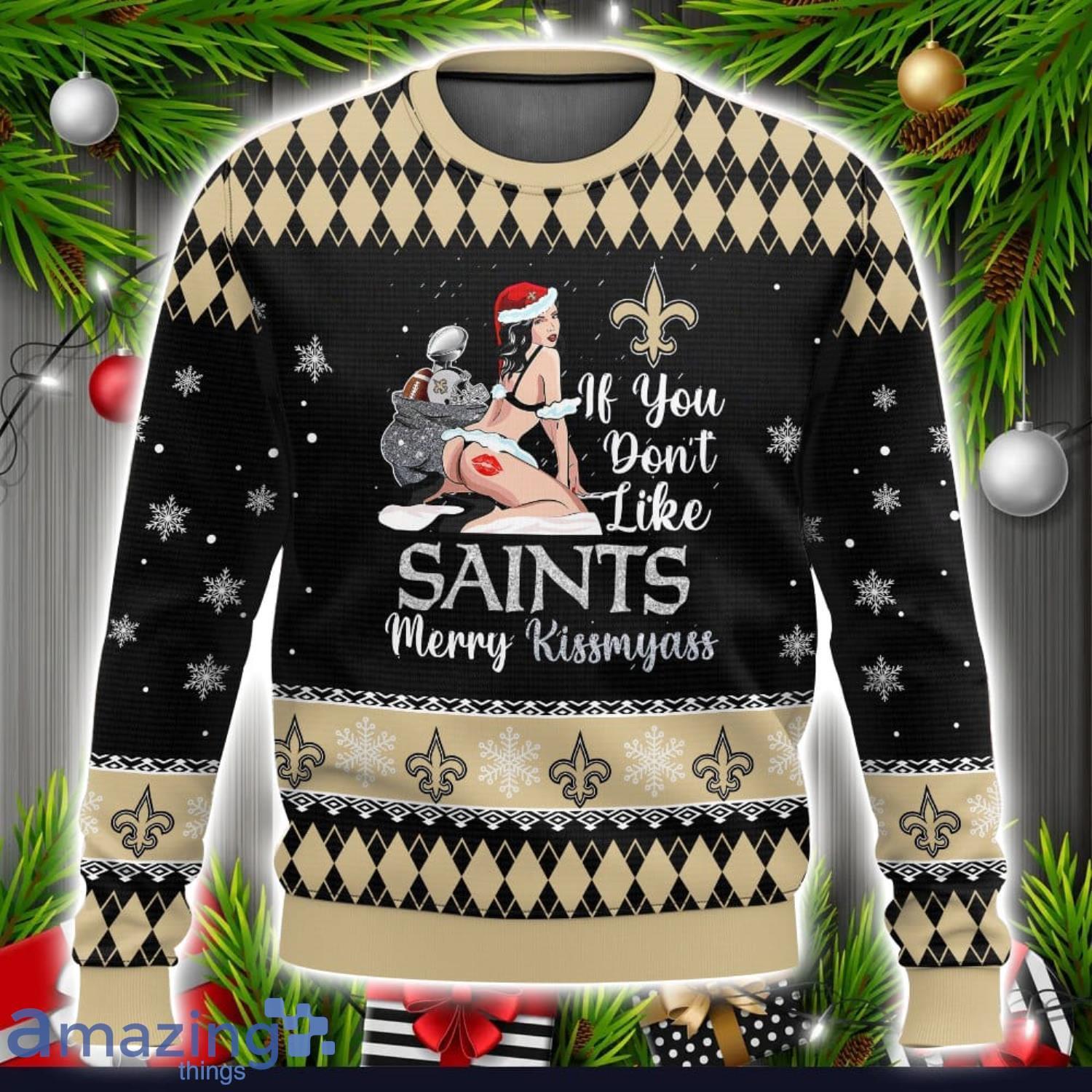 So, why settle for an ordinary Christmas sweater when you can proudly display your team spirit with our New Orleans Saints Kissmyass 3D Ugly Christmas Sweater? Order yours today and let the world know that you’re a true Saints supporter who embraces the holiday season in style!