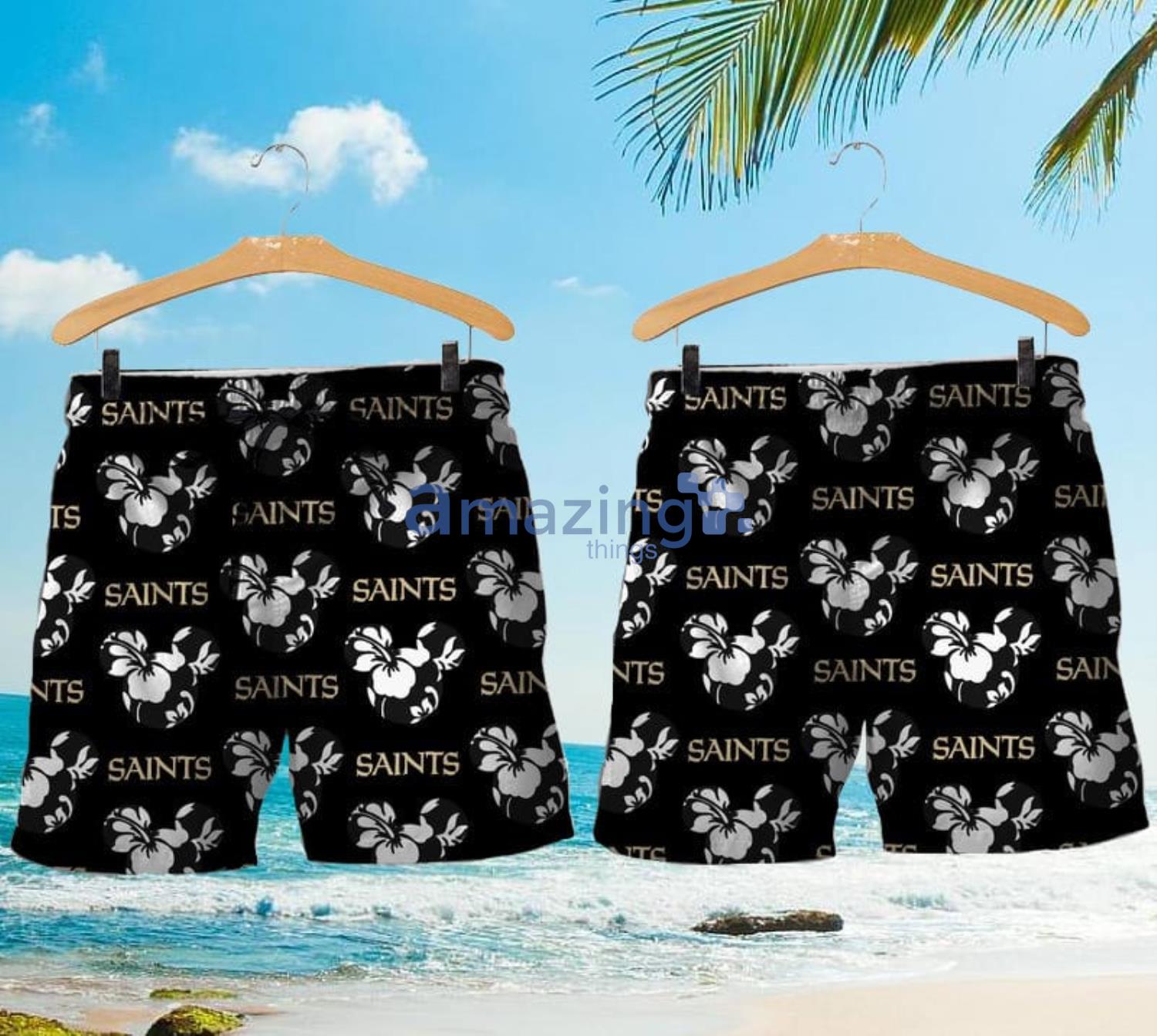 Some of the New Orleans Saints Mickey And Flowers Hawaiian Shirt And Shorts photos