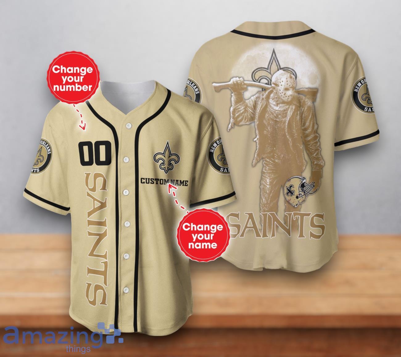 Crafted with meticulous attention to detail, this officially licensed baseball jersey features the iconic New Orleans Saints logo prominently displayed on the front. The back is customized with your chosen name and number, making it a truly unique and personalized piece of fan gear.