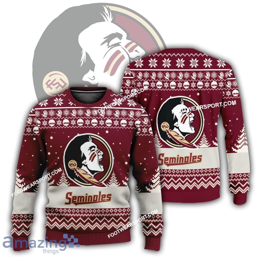 Get in the holiday spirit with our New Season Florida State Seminoles Logo Cabin Ugly Christmas Sweater! This fun and festive sweater features a bold all-over print of the Florida State Seminoles logo, perfect for showing off your team spirit during the holiday season. Made for adults, this cozy sweater is the perfect gift for any Seminoles fan in your life. Stand out at your next holiday party or game day event with this unique and eye-catching sweater. Get yours today and spread some
