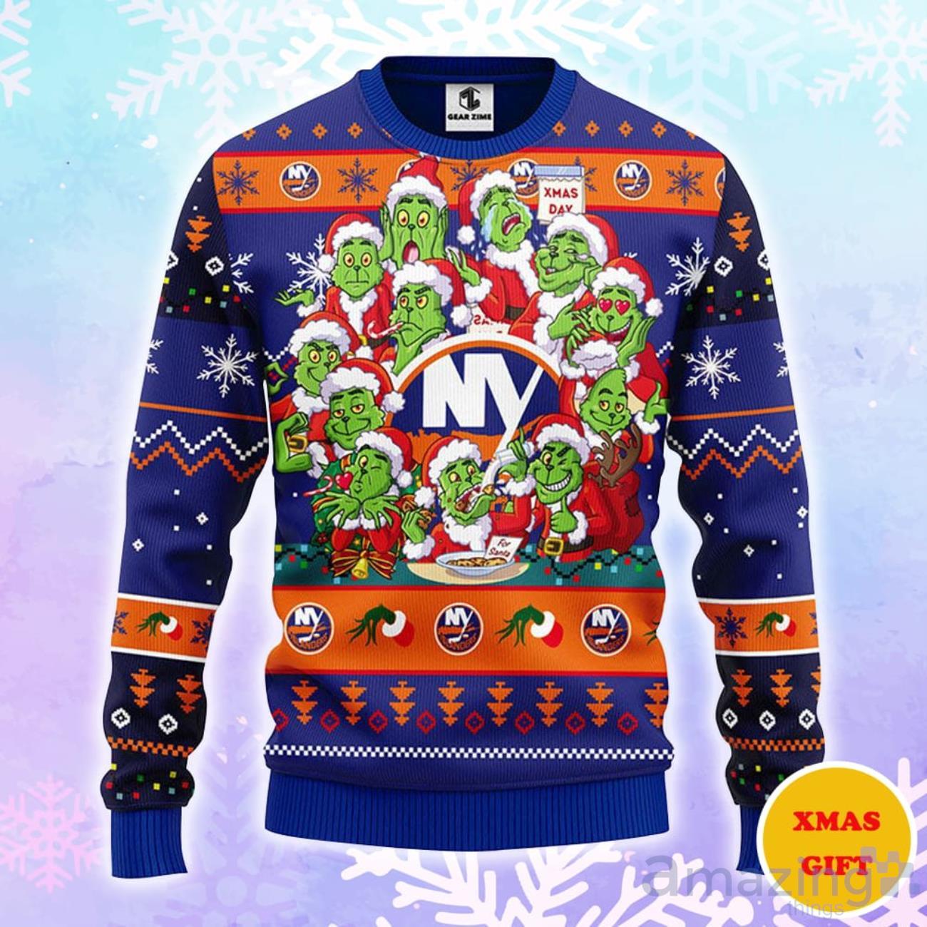 Some of the New York Islanders 12 Grinch Xmas Day Christmas AOP Sweater photos