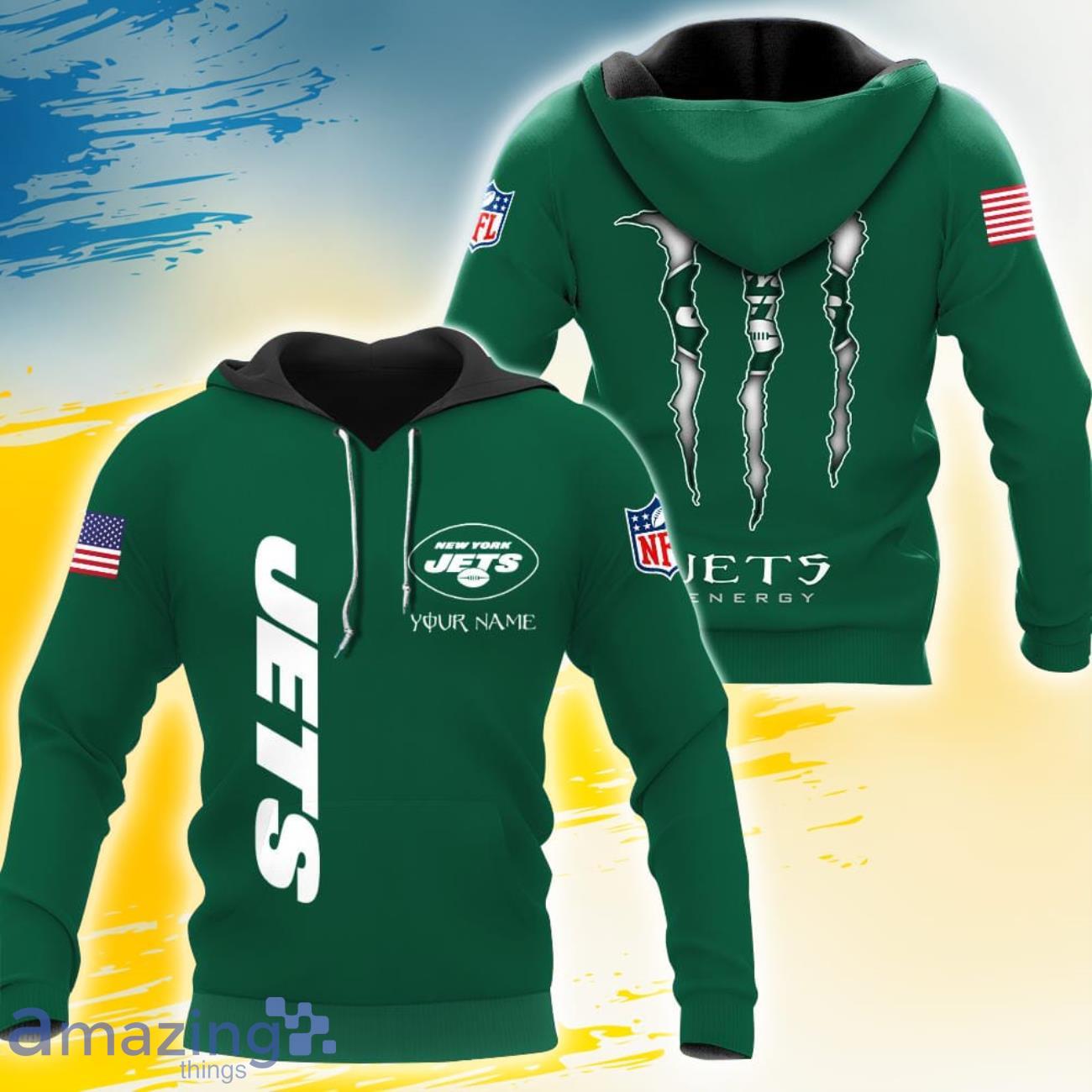 Show your love for the New York Jets with our custom name hoodie, the perfect gift for real fans. This cozy hoodie is not only stylish but also personalized with your name, making it a unique and special addition to your game day attire. Whether you’re cheering from the stands or watching from home, this hoodie is sure to keep you warm and in style. Get yours today and represent your favorite team in a whole new way!