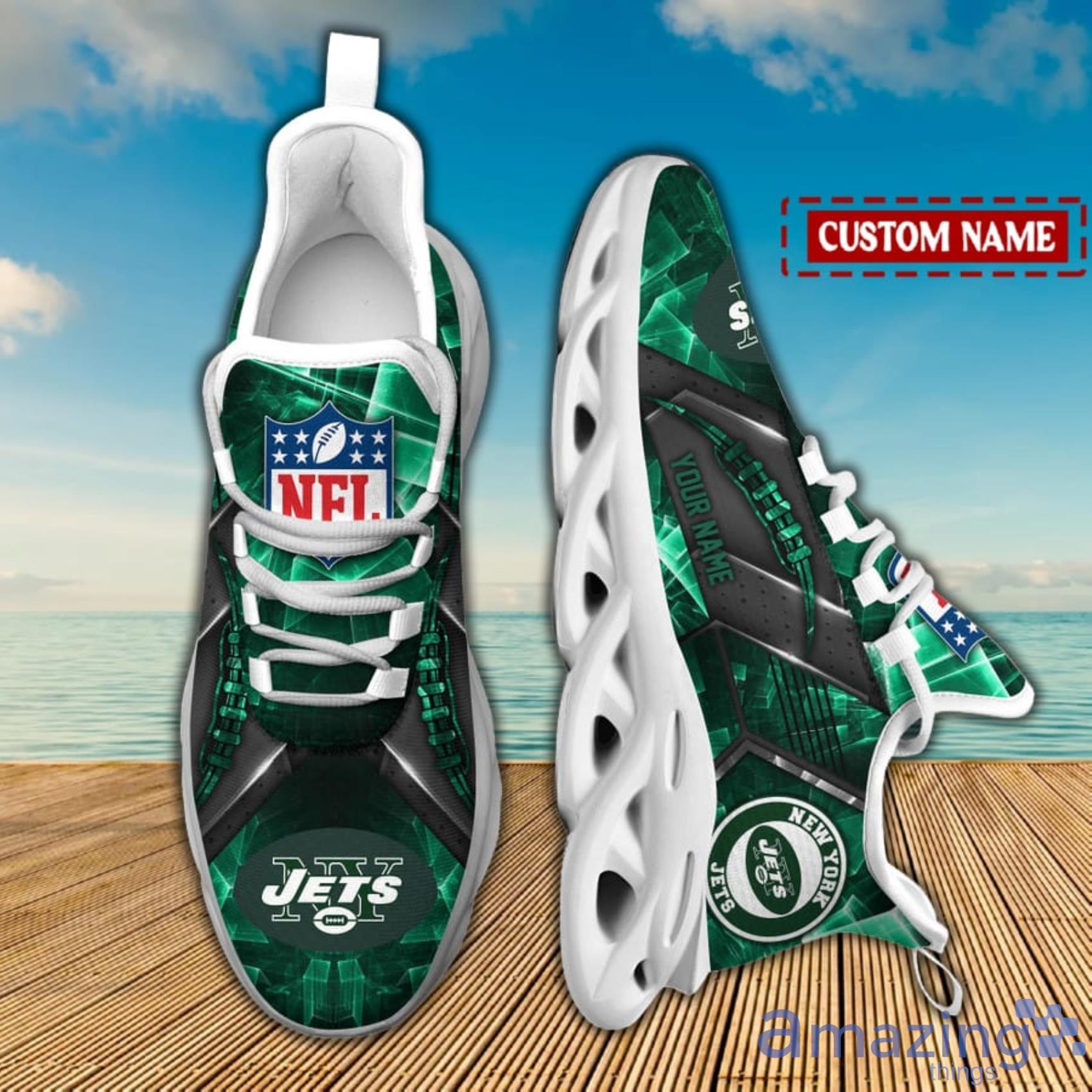 So, if you’re looking for the ultimate way to show your love for the New York Jets, look no further than the New York Jets NFL Light Abstract Pattern Custom Name Max Soul Shoes for Men and Women. Order yours today and step up your game!