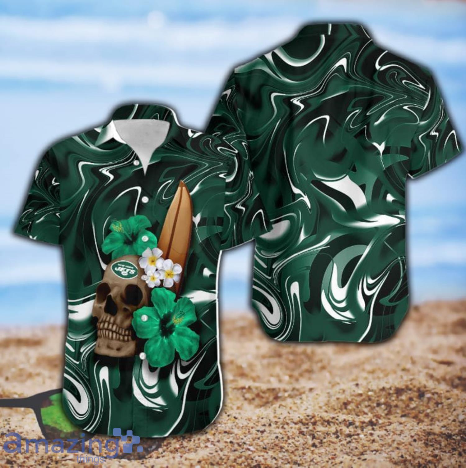 Some of the New York Jets Skull And Hibiscus Flower NFL All Over Print Hawaiian Shirt photos