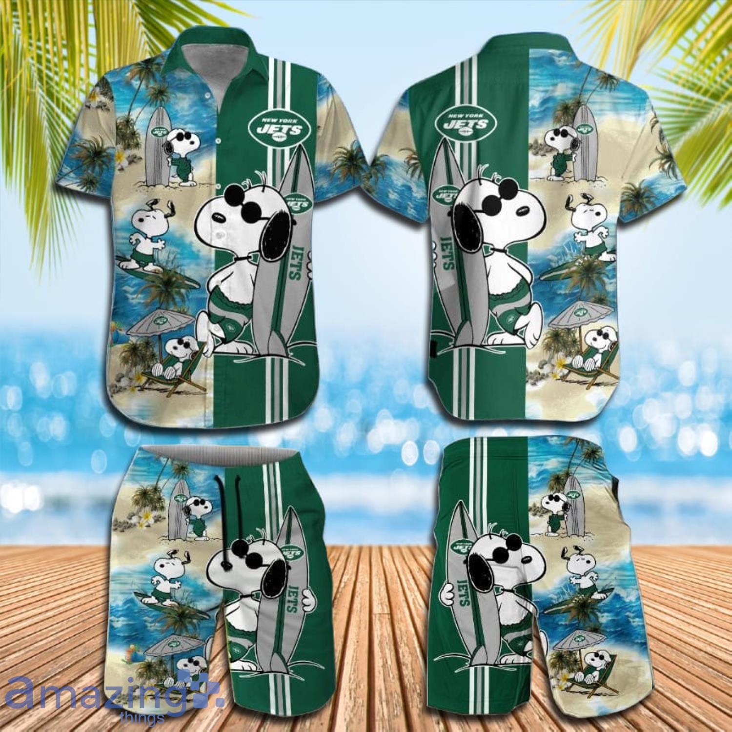 This design is available in a combo Hawaiian shirt & shorts. You can also get it separate. The default option is only one shirt or one pair of shorts. You have chosen a combo to get them both. This combo New York Jets Snoopy Surfing Summer Beach Hawaiian Shirt And Short is perfect to go to the beach. Get yours now or make a great gift.
