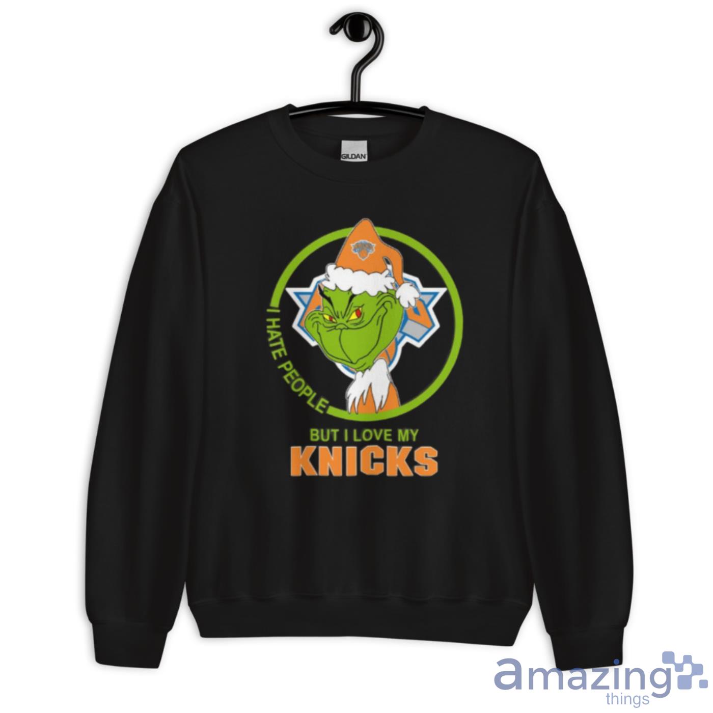 New York Knicks NBA Christmas Grinch I Hate People But I Love My Favorite Basketball Team Shirt Details