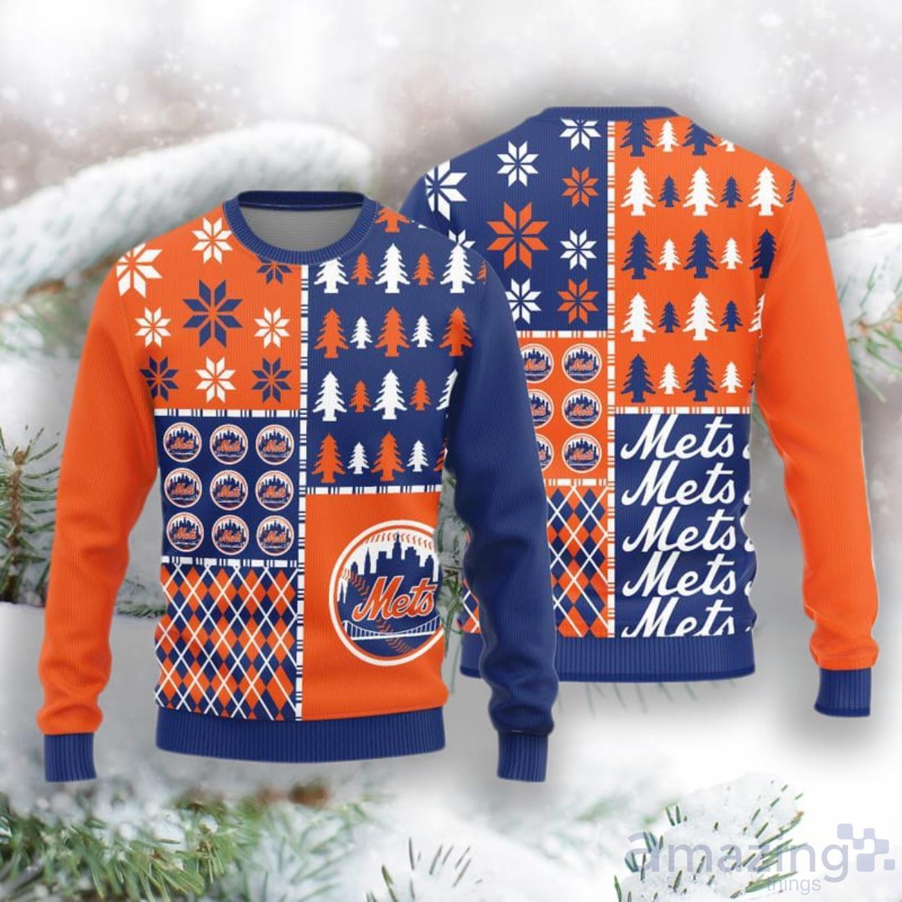 New York Mets Christmas Pine Trees Pattern New Style Knitted Sweater