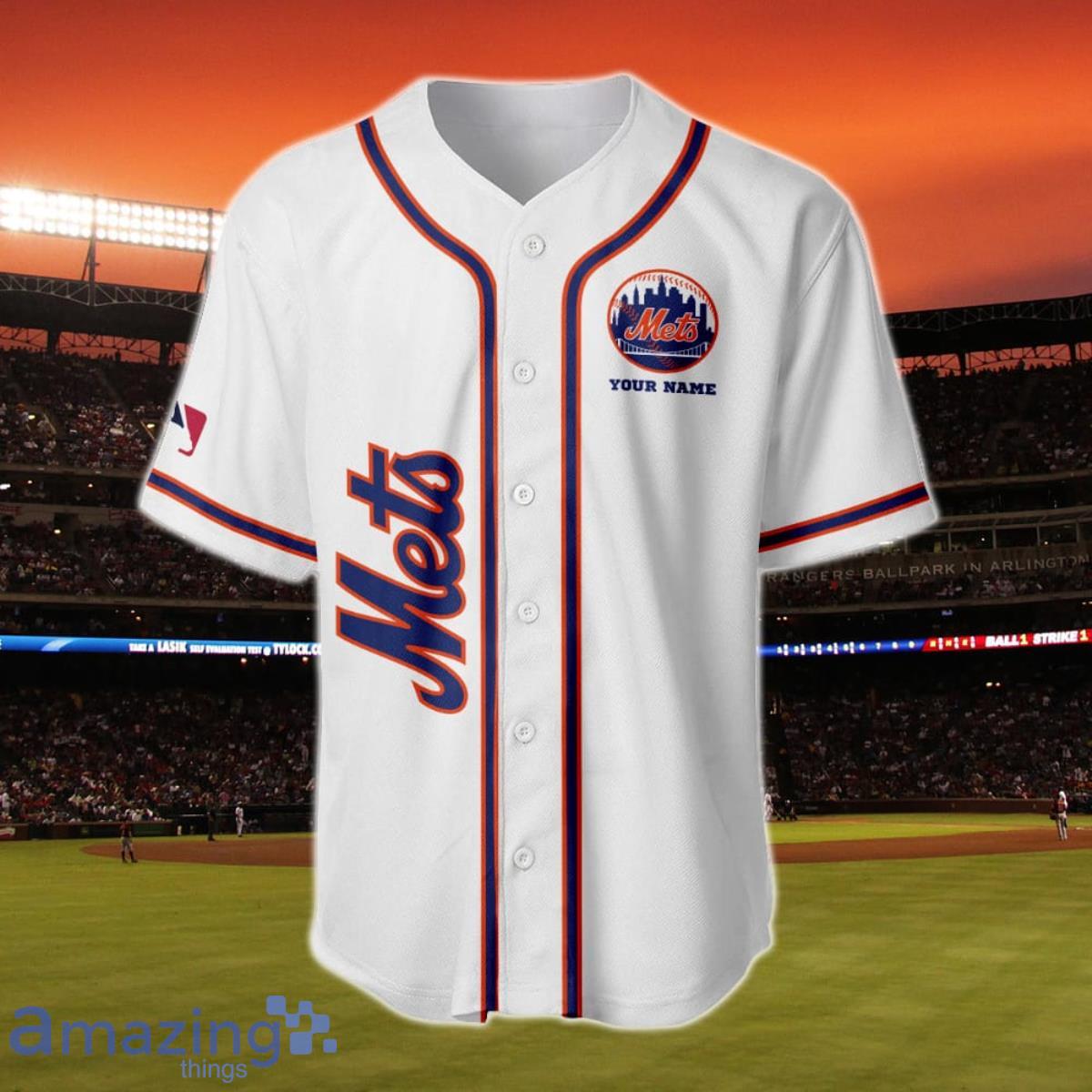Get ready to show off your love for the New York Mets with our Major League Baseball Custom Name Baseball Jersey! This authentic jersey is made with high-quality materials and features the iconic Mets logo on the front. But what really sets this jersey apart is the ability to customize it with your own name on the back. Whether you’re heading to a ballgame or just want to represent your favorite team in style, this jersey is the perfect choice. Don’t miss out on your chance to own a piece of Mets history – order your custom name baseball jersey today!