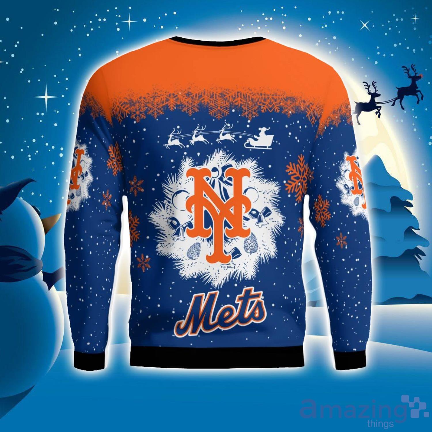 New York Mets Santa sleigh driving reindeer Pattern Ugly Christmas Sweater