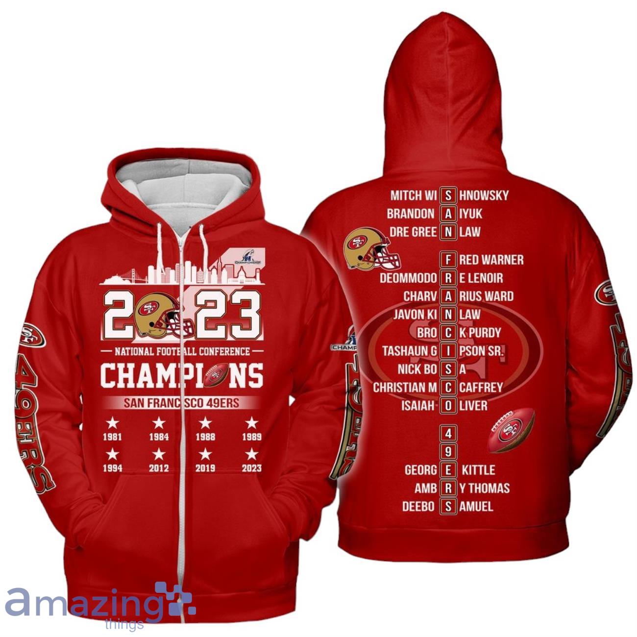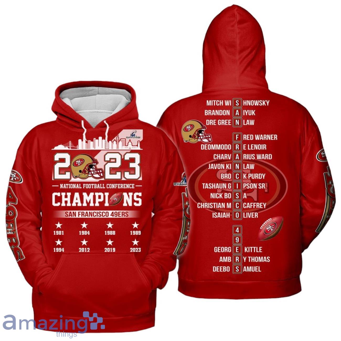 Get ready to show off your love for the San Francisco 49ers in style with our NFC Champions San Francisco 49ers 8 Times 3D Red Shirt Hoodie. Made for true fans like you, this hoodie is the perfect addition to your game day wardrobe.