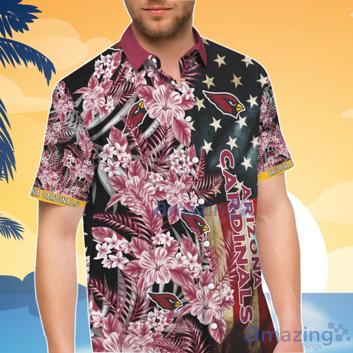 Do you bleed Cardinal red? Then this NFL Arizona Cardinals American Flag Flower Hawaiian Shirt And Shorts Gift For Summer is the perfect way to show your team spirit while staying cool and comfortable all summer long. Made from 100% polyester, this shirt and shorts set is lightweight and breathable, perfect for those hot summer days. The shirt features a Hawaiian print in Cardinal red, white, and black, with the team logo in the center. The shorts are a coordinating red with white and black accents. This set is Officially Licensed by the NFL.