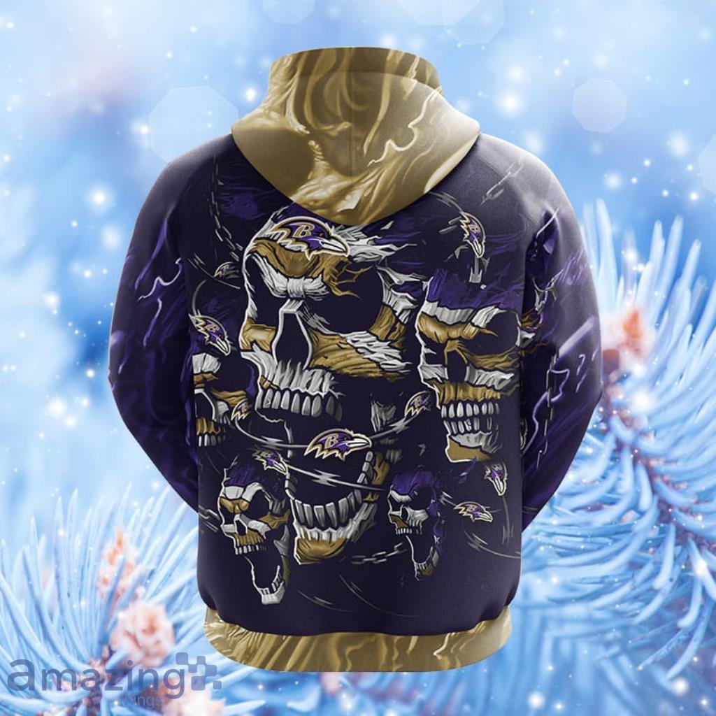 NFL Baltimore Ravens Skull Funny Violet Hoodie, Zip Hoodie 3D All Over Print For Fans