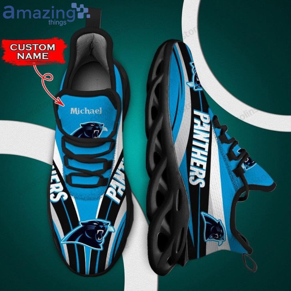 NFL Carolina Panthers Custom Name Blue Black Max Soul Shoes Gift For Fans Sport